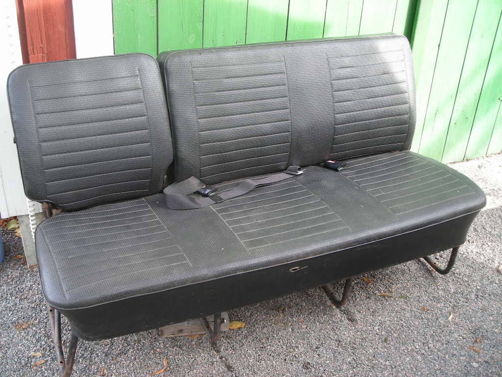 Svarta soffor som passar från 68-79. Bakre soffan är fällbar vilket var ett tillbehör. Alla rullbälten och midjebälte medföljer. Jag har lite fler bilder på de skavanker som finns. Pris 1500.- eller bud.
