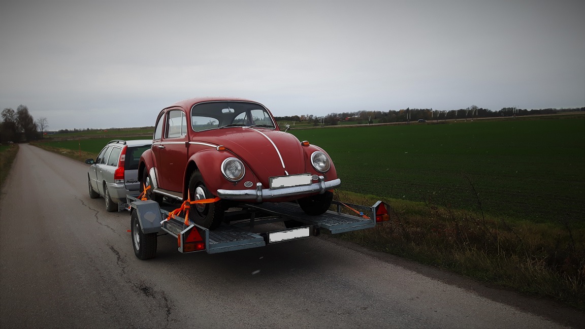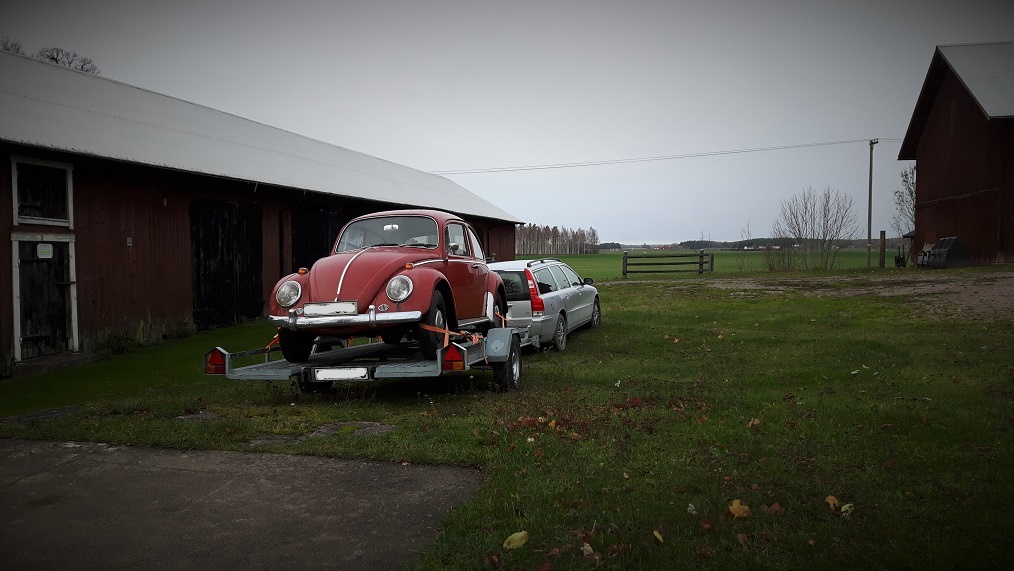 Ägarens grabb som även han var från 1966 som bilen stod hos hade köpt ett nytt 6v batteri och bytt ena däcket som de va punka på. Samt dragit ut den ur ladan när jag kom dit.