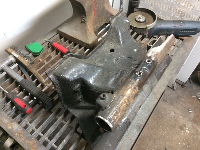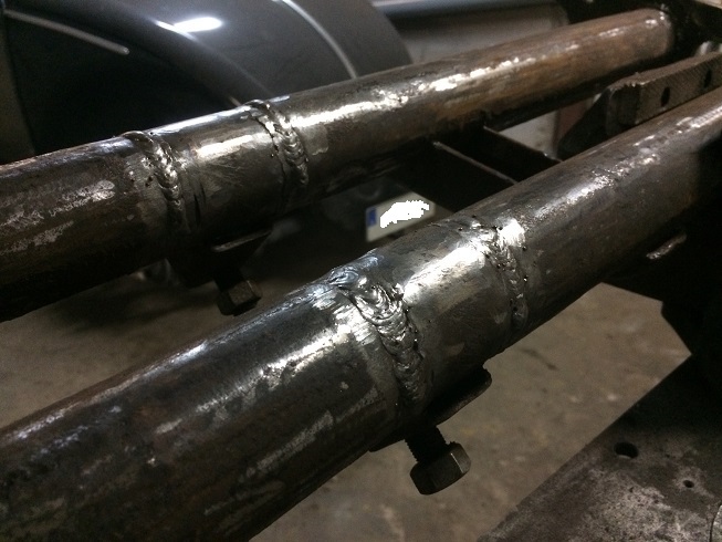 Gjorde det enkelt genom att kapa av diagonalt en del av röret, vände den avkapade biten så va lösningen klar. Ibland ska det va enkelt  ICQ/ag  Svetsade även i muttrar i det övre röret, som karossen sen skruvas i.