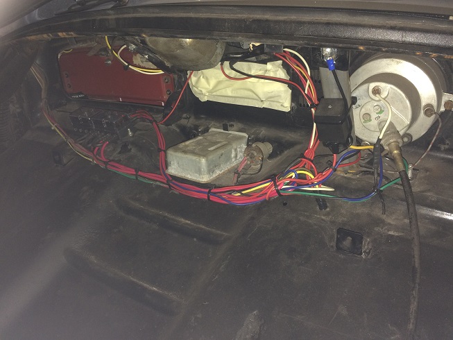 Blev moderata 195/60/15 hjul med motorcykel skärmar på alla hjulen, som jag tyvärr inta har nån bild på, dock kanske ni ska va glada, för dom va det fulaste en amatör kunde åstadkomma. Men dom va ju behövliga i lagens ögon  ICQ/ab Gjorde en lättare uppfix av el systemet med nya säkringsboxar & lite omdragning också innan det va daxs att ta trailern & bubblan mot norrtälje & SFRO.