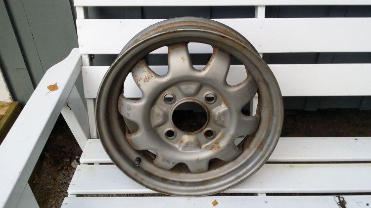 Hittade ett par fälgar som suttit på en USA importerad Karmann Ghia som bortskänkes på något VW forum på Facebook ( tror det faktiskt var Boxervilles sida mins inte riktigt ) som inhämtades har krängt av däcken i väntan på blästring och färg...