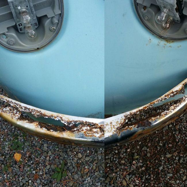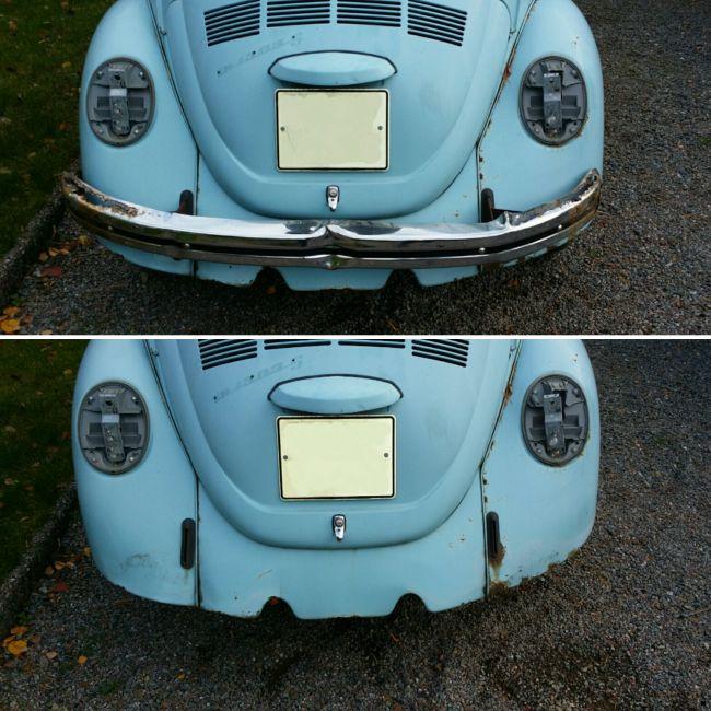 Stötfångaren bak var hyfsat slut och bucklig så den har demonterats ska rikta/blästra/måla fästena innan den andra stötfångaren ska bearbetas...
