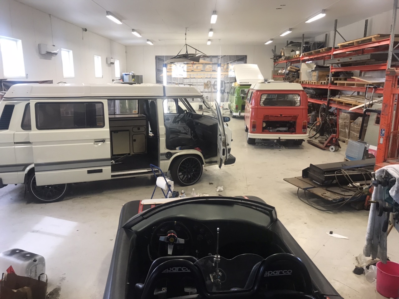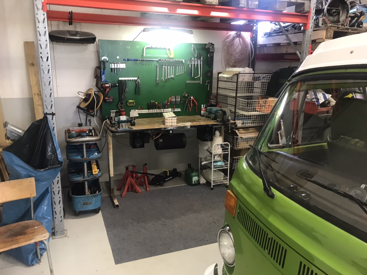 Då jag miste mitt garage hos mina föräldrar pga flytt så fick jag hitta lösning och lösningen blev bästa tänkbara. Fick hyra fyra platser hos nya ägaren. Innan det så fick jag även hjälp av mr T att rädda karossen på Lilla My Typ 1 -67. Tack T!