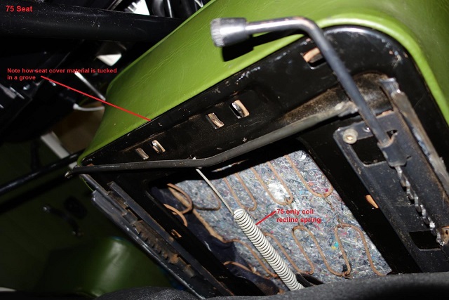 Översta bilden visar ett underrede som även det påstås vara från 1975, och det ser ut som mitt. och där ska klädselen vikas ner i ett spår.
