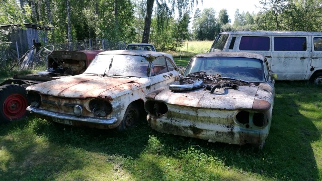 Har en gammal kollega som rensar upp på gården, där står två stycken corvair båda är objekt, en är typ komplett och rätt fin i kromet den andra saknar motor, en del inredning mm