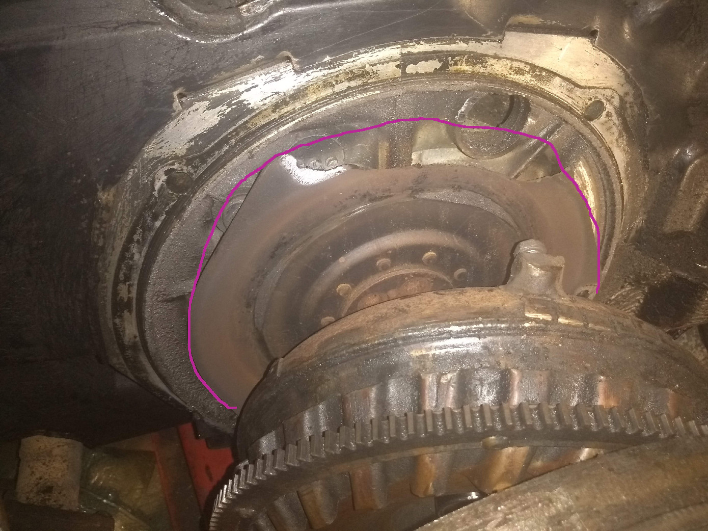 Den skiva som sitter mellan motorn och momentomvandlaren. Den skiva som ser "lite trasig ut" på bilden. Till en buss 1978.