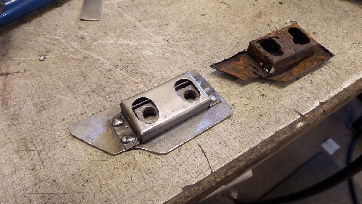 lite dum fråga, men hur ska mothållet se ut på de fyra främre M10 bultarna som håller ihop platta & kaross ? är det nån lös gängad insats i karossen eller ska det vara gängade hål i botten på karossen (som kanske rostlagats bort i mitt fall) Hittar ingen bild på hur det kan se ut orginal
