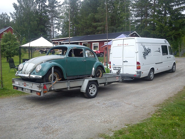 Men då jag inför julhelgerna besatt mer fritid än många andra hårt arbetande famijefäder hade jag lovat hjälpa Marcus att köra ovalen ner till Linköping efter försäljning. Dagen bestämdes till fredag då det skulle passa bäst för mej med barnvakt och sambolagens ledighet. (hon jobbar som sköterska på ett äldreboende så några garantier att helgerna går i fridens tecken finns aldrig i detta garage) Nåväl, fredag fick det bli. Torsdagkvällen kom och trailern krokades på bussen och kördes över till Helsings Smejja för att lastas. Under muntert vemod spändes den fast för långfärd. Förvisso med SMHI:s klass-1 varningar inför morgondagen i bakhuvudet, men vafan. Lite snö har väl aldrig hindrat en?