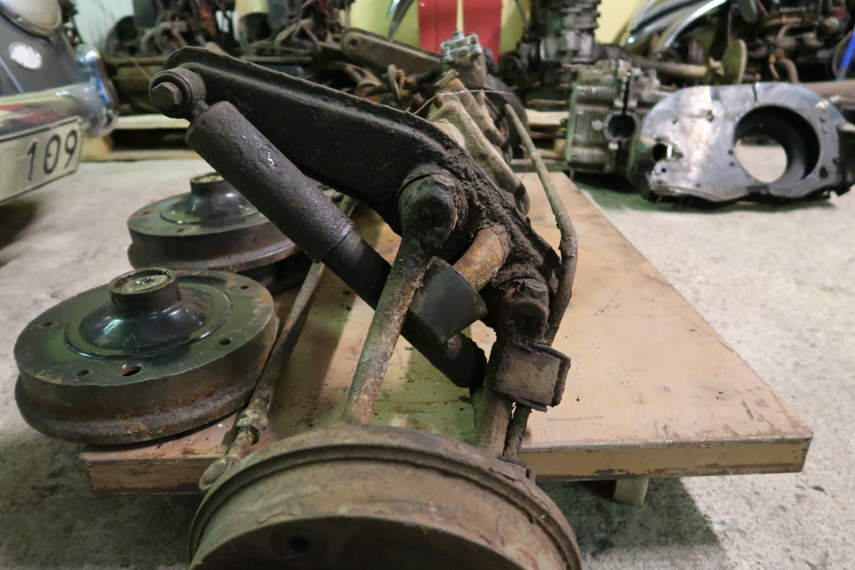 Komplett original ledbultsframvagn i bra skick. Från trumma till trumma.
