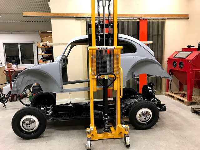 Lyfte på karossen med en höglyftande handtruck, gick smidigt.