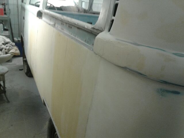 Nu har jag förvisso inte sagt ett knyst om färgvalet, men eftersom du drar upp det så delar jag med mig av mina åsikter.  ICQ/ad Att välja originalfärg har för mig mindre att göra med om det ska bli en originalrenovering eller inte, utan mer om att färgen ska "hålla" (estetiskt alltså) i många år framöver. Det som är snyggt idag är utdaterat om tio-tjugo år, hur många gamla lacktrender har man redan hunnit glömma? Enfärgat för att "less is more", framförallt på en bay, men även i vissa fall hos splittarna. Fabrikslacken tenderar även till att vara mer slitagetålig och har haft tiden på sig att patineras med värdighet, det svåra är att färga in de nya delarna så att övergången mellan nytt och gammalt inte märks.