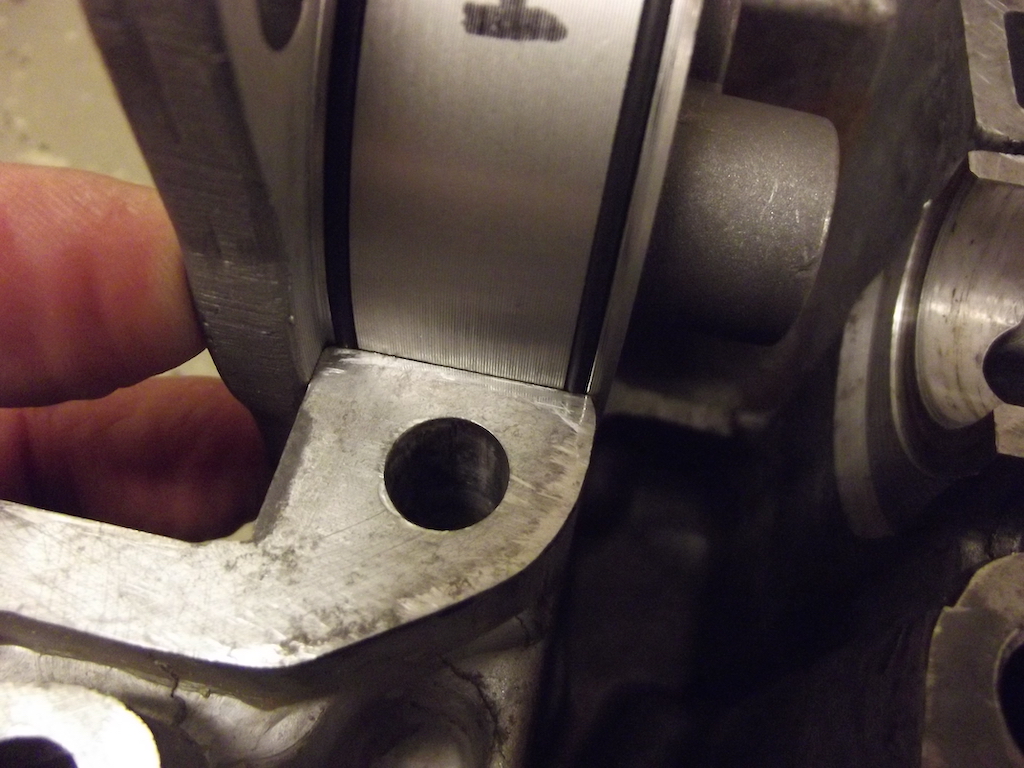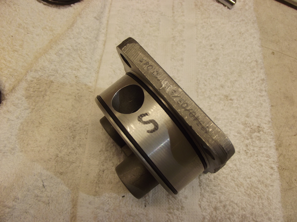 Dags att kolla spelen på kammen. Axialspelet justeras genom att slipa lite på "läppen" på kamlagren. Jag lade slippapper på en plan yta och slipade försiktigt lite åt gången sen mätning. 400-papper och sen 1500-papper. Om man använder kamlager med "läpp" i båda blockhalvorna (inte original) som jag gör, då bör man vara noga med att slipa på samma sida på de båda lagerhalvorna. När man känner sig nöjd med axialspelet i de båda blockhalvorna måste man montera ihop blocket och kontrollera spelet igen så att man inte slipat lagren asymmetriskt. Axialspelet finns specat i verkstadshandboken, men nu kör jag med en blandning av delar så jag använder 0,05-0,10 mm spel.