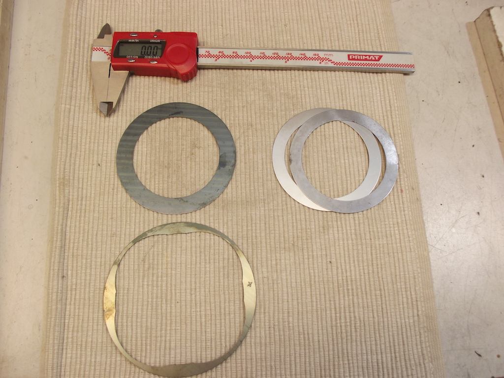 Fick beställa en uppsättning olika för att kunna laborera med. Observera att det innersta shimset är större än de två övriga (som är samma som typ4). Detta stora verkar bara finnas i tjocklek 0,40mm de övriga finns i flera tjocklekar från 0,24 till 0,38mm.