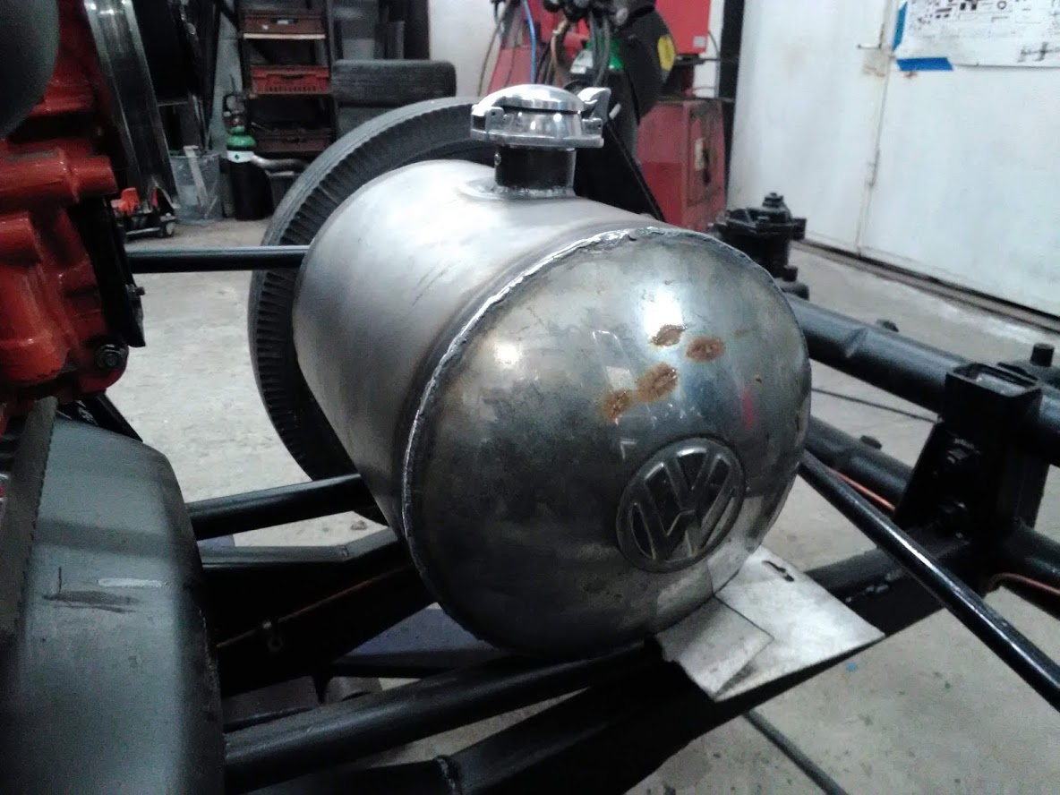 så då var min variant på tank klar ,det blev o starta upp tig svetsen rulla lite plåt plocka fram ett par gamla nav kapslar o bygga lite ,nu återstår bara att skruva fast den tanka o koppla soppa slangen, mer i morgon o kanske då en video snutt på motor test vi får se
