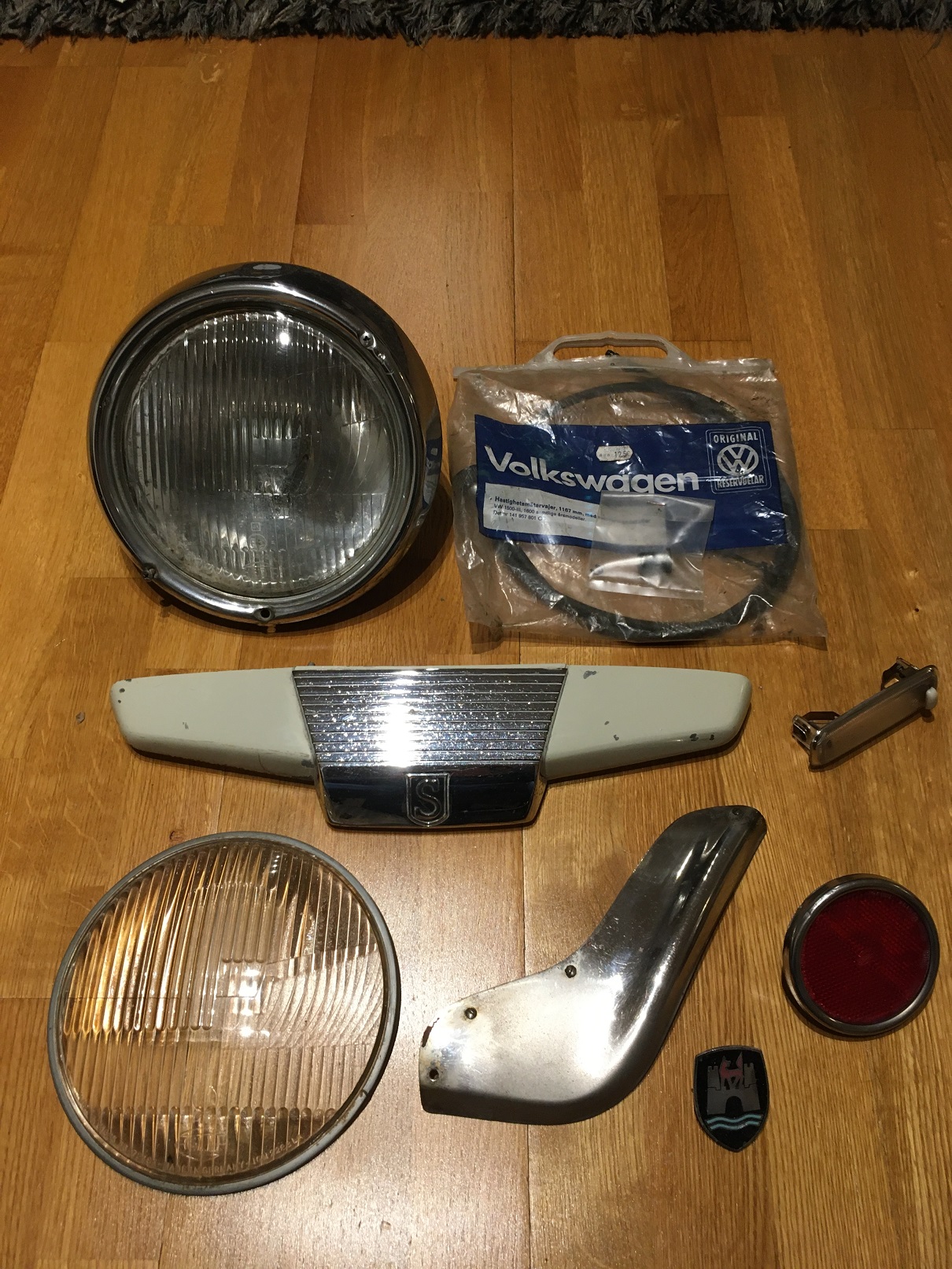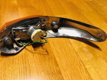 Motorhandtag till 1500S komplett med nummerskyltsbelysning, kromet något nopprigt och 1 pinnbult saknas (ej avbruten)