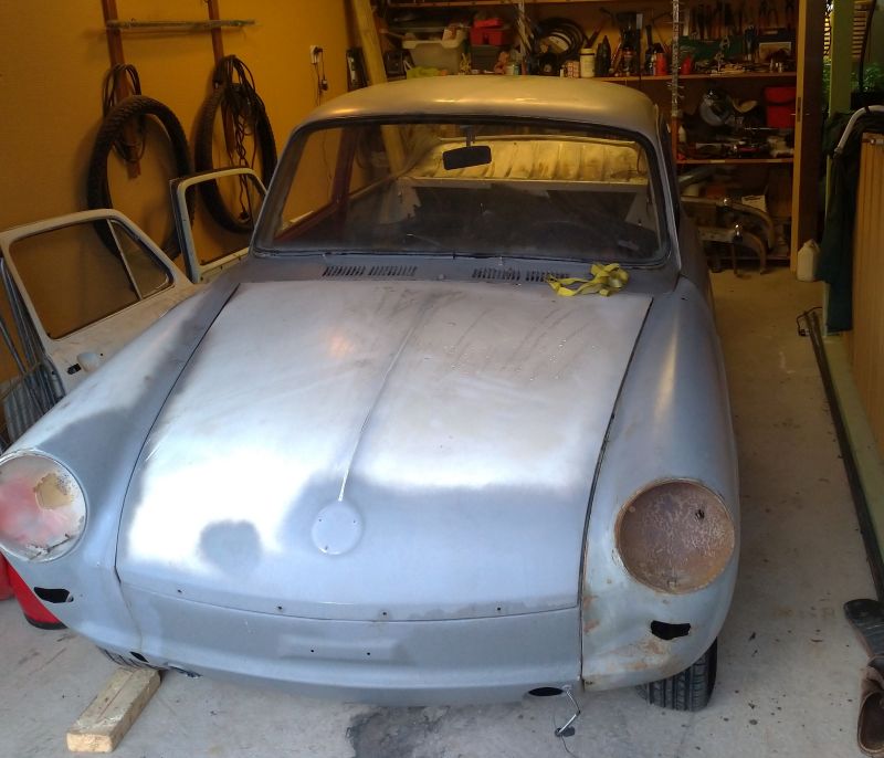 Skärmen som sitter på är i skapligt skick, behöver dock en del jobb innan lack.