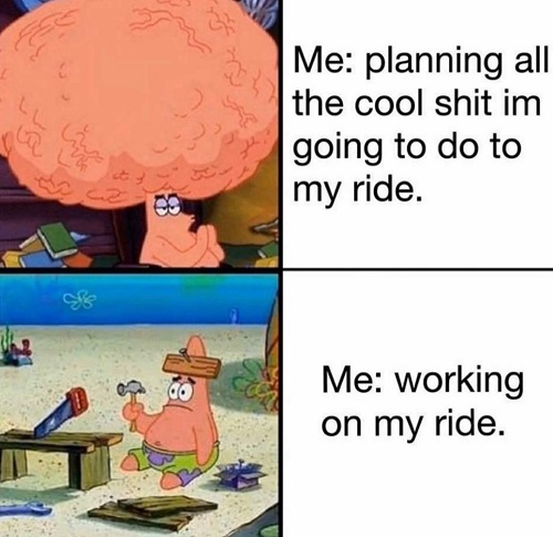 Ja, i sin enfald så trodde man det skulle gå snabbt och sen får man för sig att ändra saker, tänkte tex att det skulle gå att modda dit 30/34hk värmekammare för att både få värme och en lite äldre look... jo tjena, efter några månader fick jag ge upp den tanken om det ska bli nått åka i sommar
