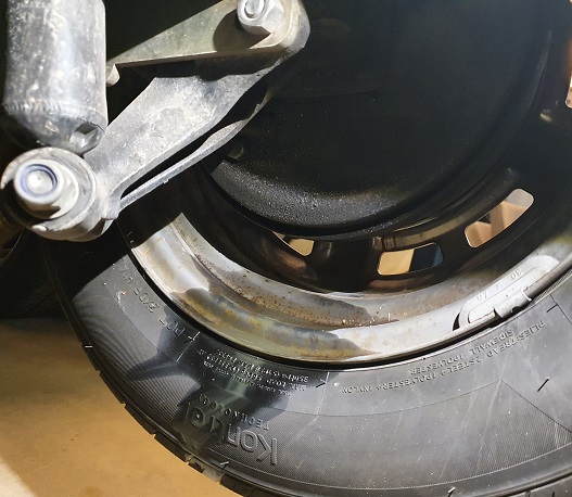 Så igår fick jag lov att dra förbi garaget efter jobbet och kolla, krängde på ett däck på en gammal plåtfälg (då det är ett helvete och sätta på bredare...), hängde på mellanplåt och stötfångare, höjde bussen aningen och släppte ner, får testa lite mer sen men kommer nog funka