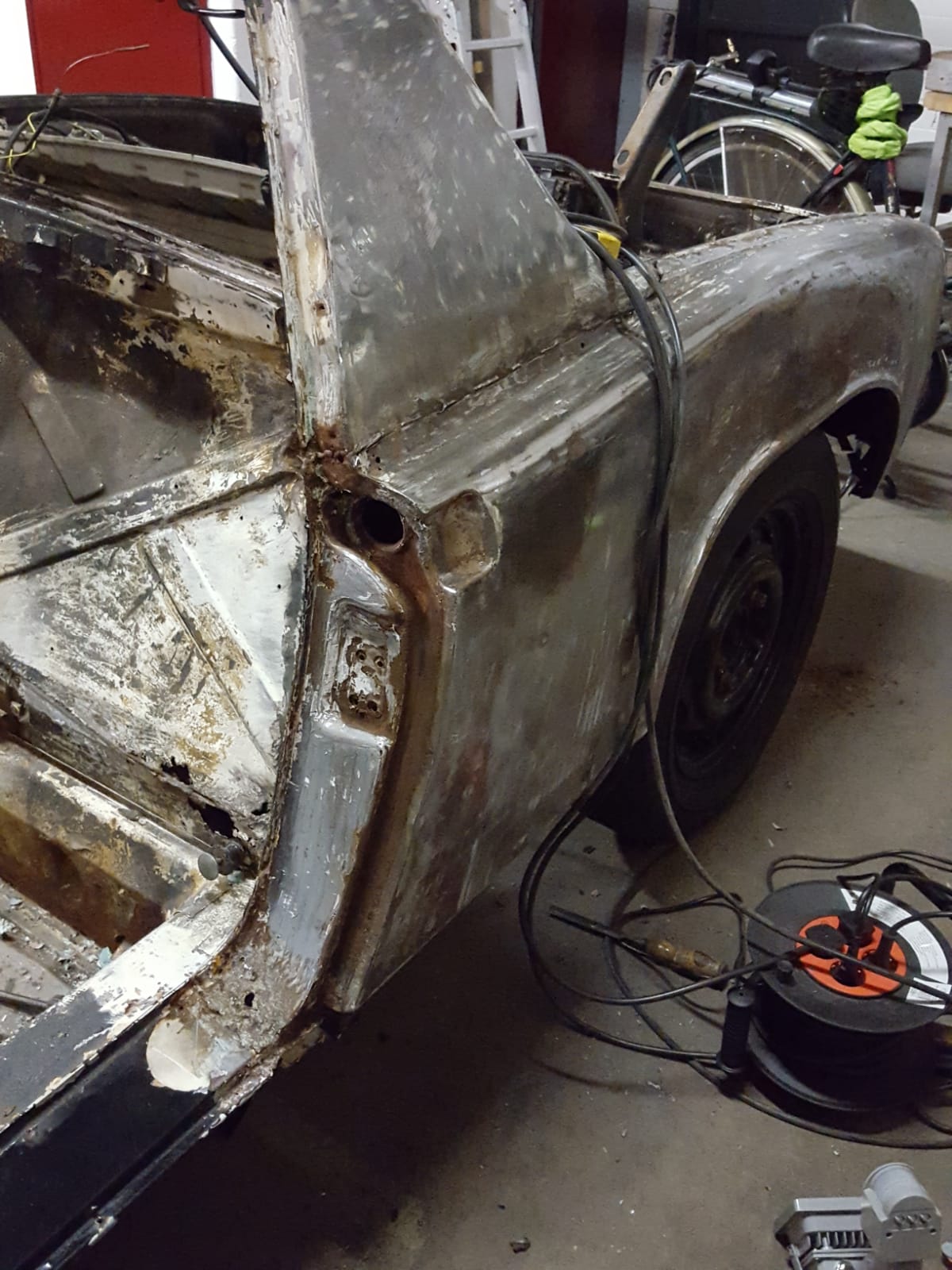 So we cut of the rear fender to check the real damage. Solid longs, rockers, jackpoints, almost solid hellhole.