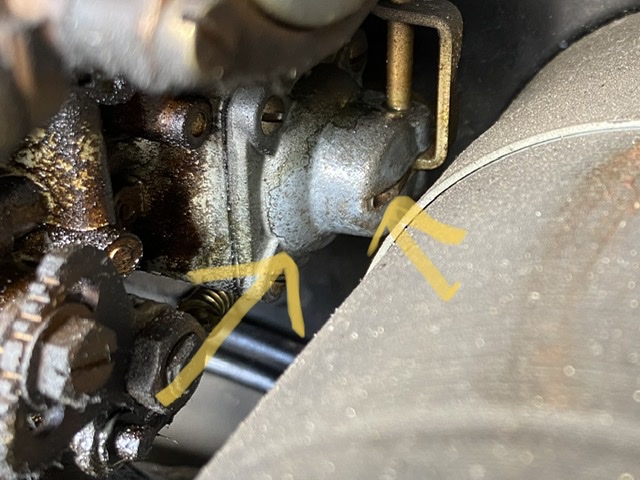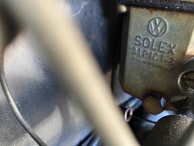 Min 1302, 71:a, läcker bränsle på höger sida av förgasaren. Förgasaren är en Solex 31 PICT-3.