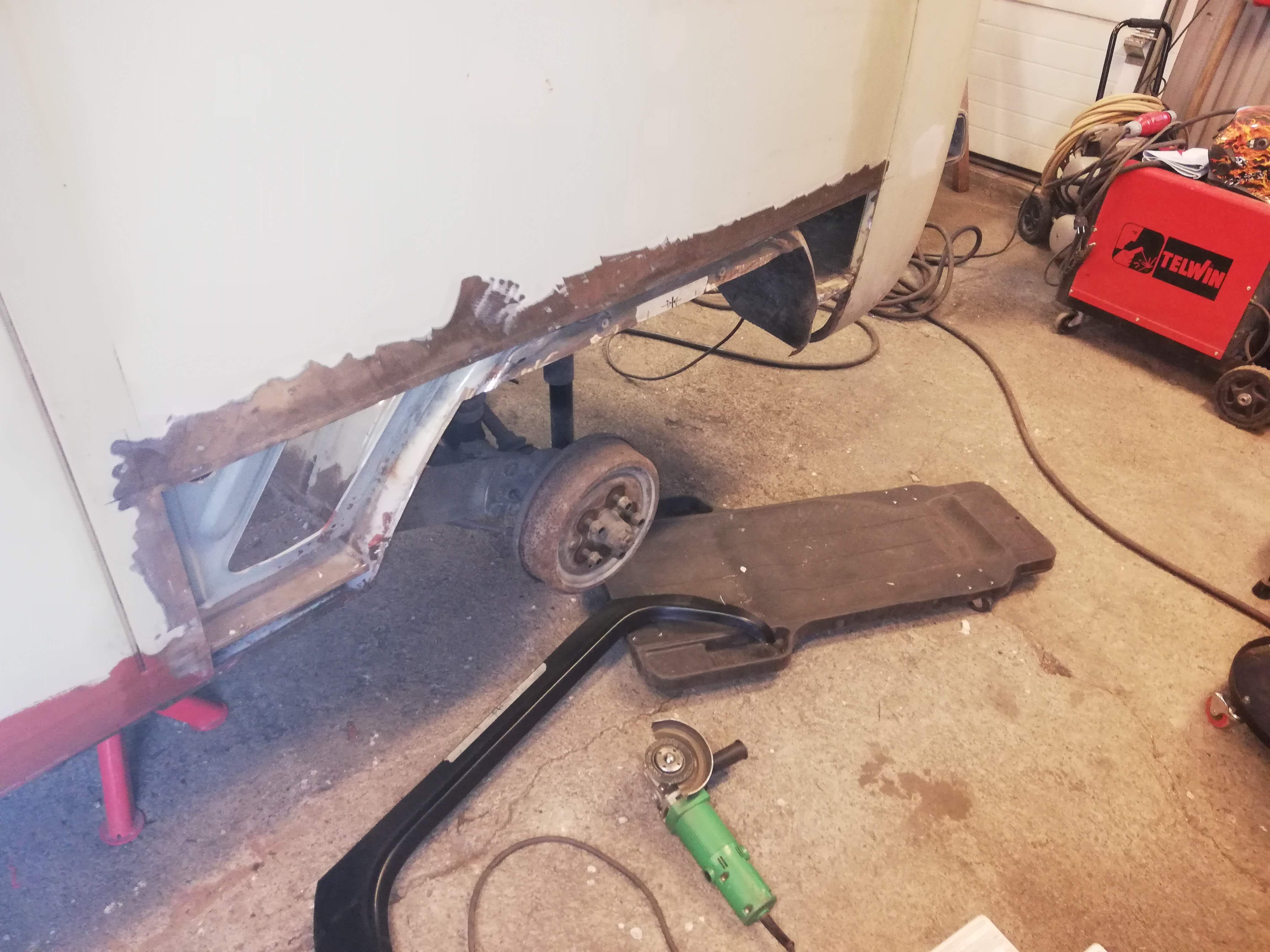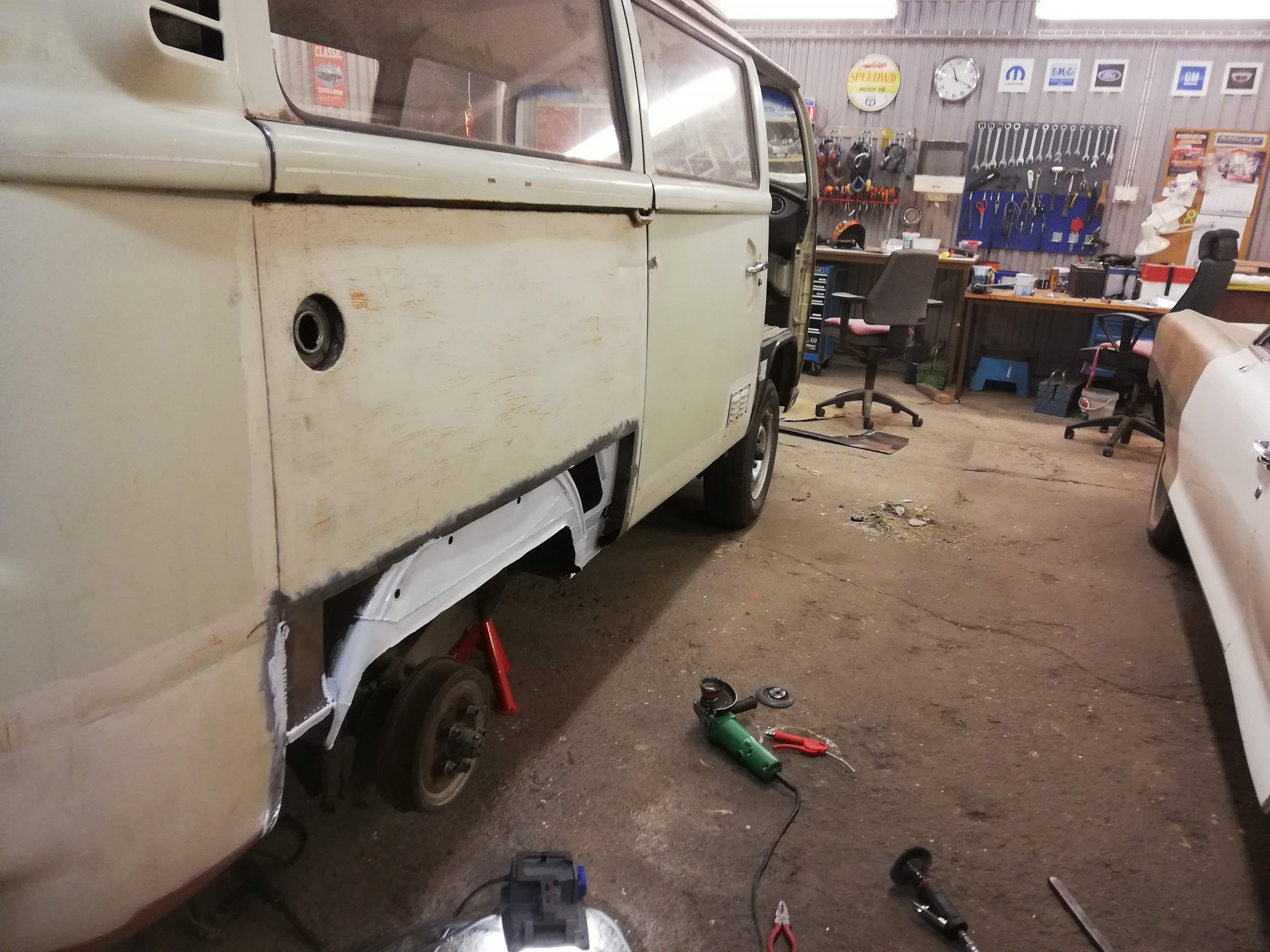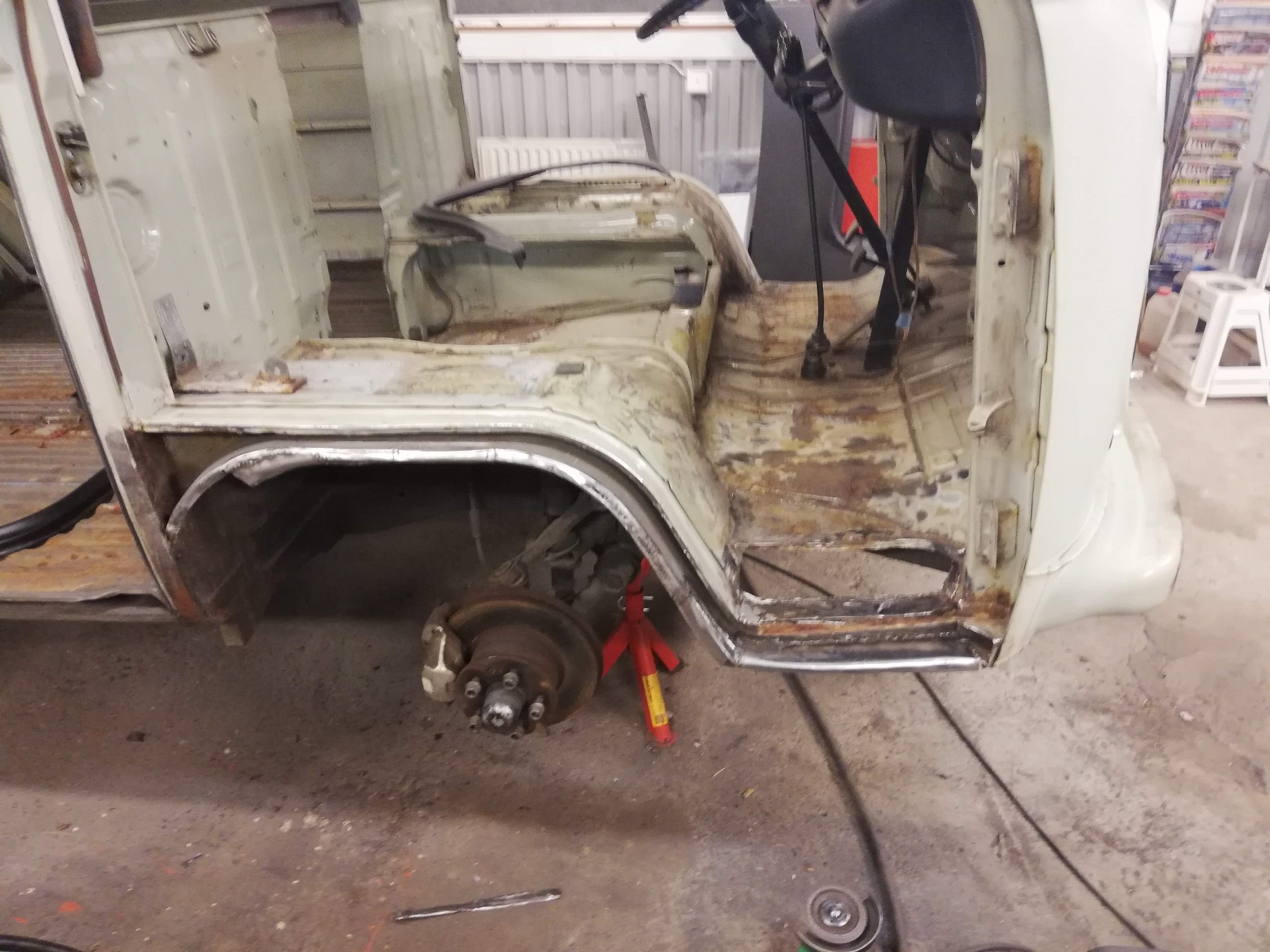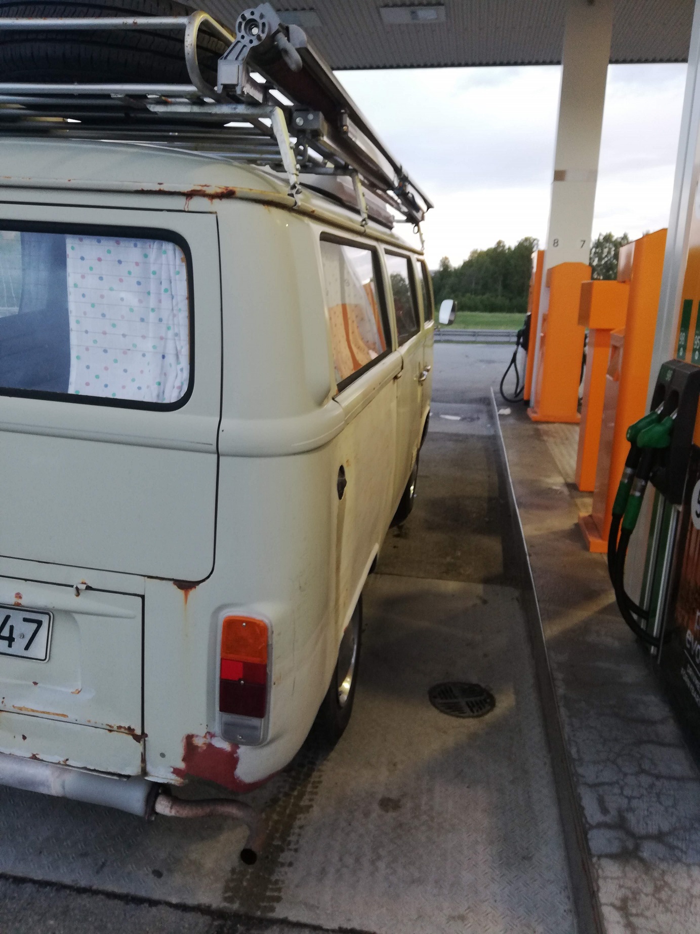 Tänkte starta en tråd här om mitt första vw projekt. En vw baywindow 1979 med SCA pop up tak som köptes i Svenljunga förra sommaren som kördes upp till Piteå. Bilen var besiktigad när jag köpte den med vissa skavanker. Rost i skärmkanter, fotsteg dvs dem vanliga ställena samt dålig kam/lyftare.  Bilen rullades in i garaget efter sommaren och rostlagning påbörjades. I vanlig ordning så kommer det ju mer fram mer rost och nivån på renoveringen höjdes.. Det skulle ju från början gå fort och "bara" vara att åtgärda tänkte jag ICQ/bj I dagsläget har golv fram, framskärmar, innerskärmar bak och vänster bakhörn samt endel gamla lagningar åtgärdats. Kvar plåtmässigt är att sätta dit nya bakskärmar på båda sidor, yttre plåt nedanför motorlucka,  2 bitar i motorrummet samt att fullgöra walkthrough konvertering som påbörjats av någon tidigare ägare  ICQ/bk en hel del grejer har köpts in, bland annat kromad stötfångare bak, kaptensstolar från vw t3, eberspächer ba6 värmare då detta satt orginal samt ett roligt och ovanligt tillbehör ICQ/ad Bilen är tänkt att lackas i l345 lichtgrau som är orginalfärg och utrustas med en enklare campinginredning. Motorn ska självklart få sig en översyn då tanken är att kunna åka långt med den. Efter detta får vi se om sänkning/höjning med tillhörande stuk genomförs. Mer bilder på detta kommer när jag klurat ut hur man postat upp allt!