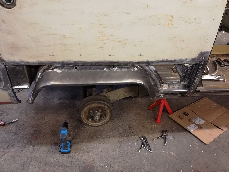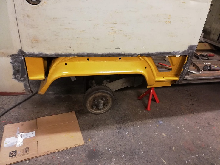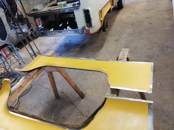 Såhär blev slutresultatet på innerskärmarna. Märkte även här att jag skulle ha maskerat ytorna där limmet ska appliceras då jag före jag började slipa läste om att epoxiprimer INTE får slipas när det är ohärdat då det finns en risk för allergen chock vilket jag helst slipper (väl medveten som sjuksköterskestudent vad detta innebär). Med 7 dagars härdningstid på Hagmans ca primer åkte jag iväg hemåt då jag studerar på annan ort och nu ligger bussprojektet vilande en stund till. Blir dock att åka upp på ungefär 2 veckor och fortsätta i och med covid 19 och distansstudier. Postar även en trevlig lagning av någon tidigare ägare i motorrummet som ska åtgärdas ICQ/ai