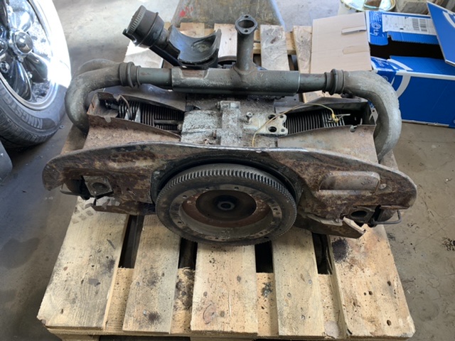 Objektmotor, går runt. Tidigare renoverad enligt motornummer. Enkelreducerat block. Skadade pinbultshål i toppar.