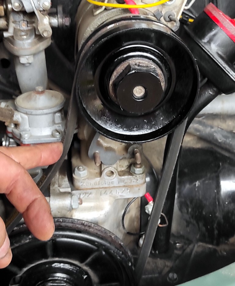 Men vid ett besök i veckam på pekade personen att på min satt fläktremmen längst ut på generatorremskivan, på min 1964 brandsprutemotor.