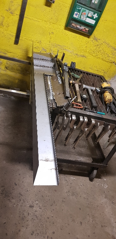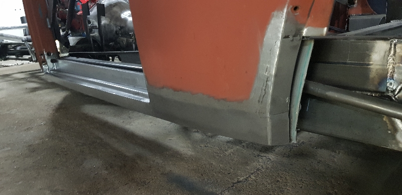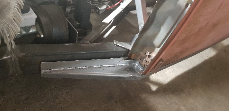 Vidare görs en L- kil som kommer och va undersidan av förlängningen av karossen mot torpeden, den får också en överdel som gör hela lådan kapslad framåt. Gör även ett lock på andra sidan för att få allt så tätt de går. Är en jäkla upp och ner med allt för att få till alla höjder, linjer passningar mot stolparna och radier, men tillslut blir jag nöjd och allt helsvetsas och slipas.  ICQ/ay