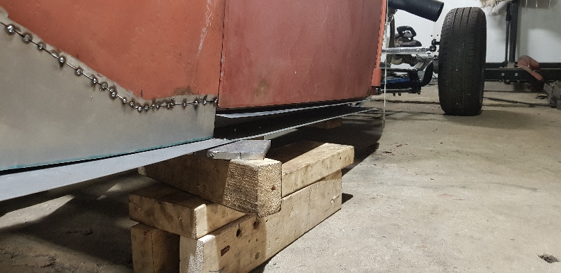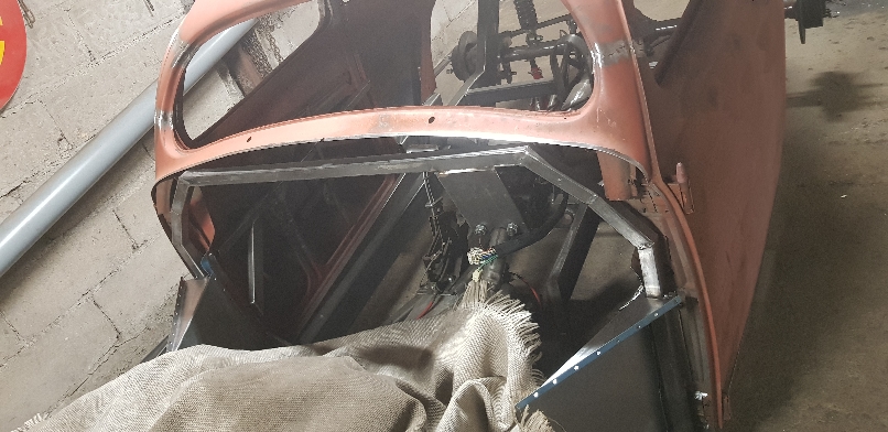 Skär ur alla nederdelar av A och B stolparna och gör anpassade plåtar mot trösklarna. Stannar till när jag kommit dit för att påbörja ramverket runt torpeden som också fäster in mot trösklarna i framkant. Sedemera ska styrstången o sånt fästastas i den är tanken.