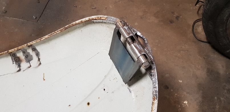 Huven får ett egenhändigt halvfäste i nederkant huv, och mötande del fästs in i ramen framför fästet till framfjädern. Tänker mig att de ska till gasdämpare som ska hjälpa till i det hela sen också, men de får vänta lite. En reflektion är att huven också behöver lite stabilisering i framtiden, då den vinglar överallt just nu  ICQ/bk