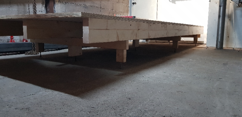 På ramen ligger dubbla 15mm konstruktions plyfa, med förskjuta skarvar.