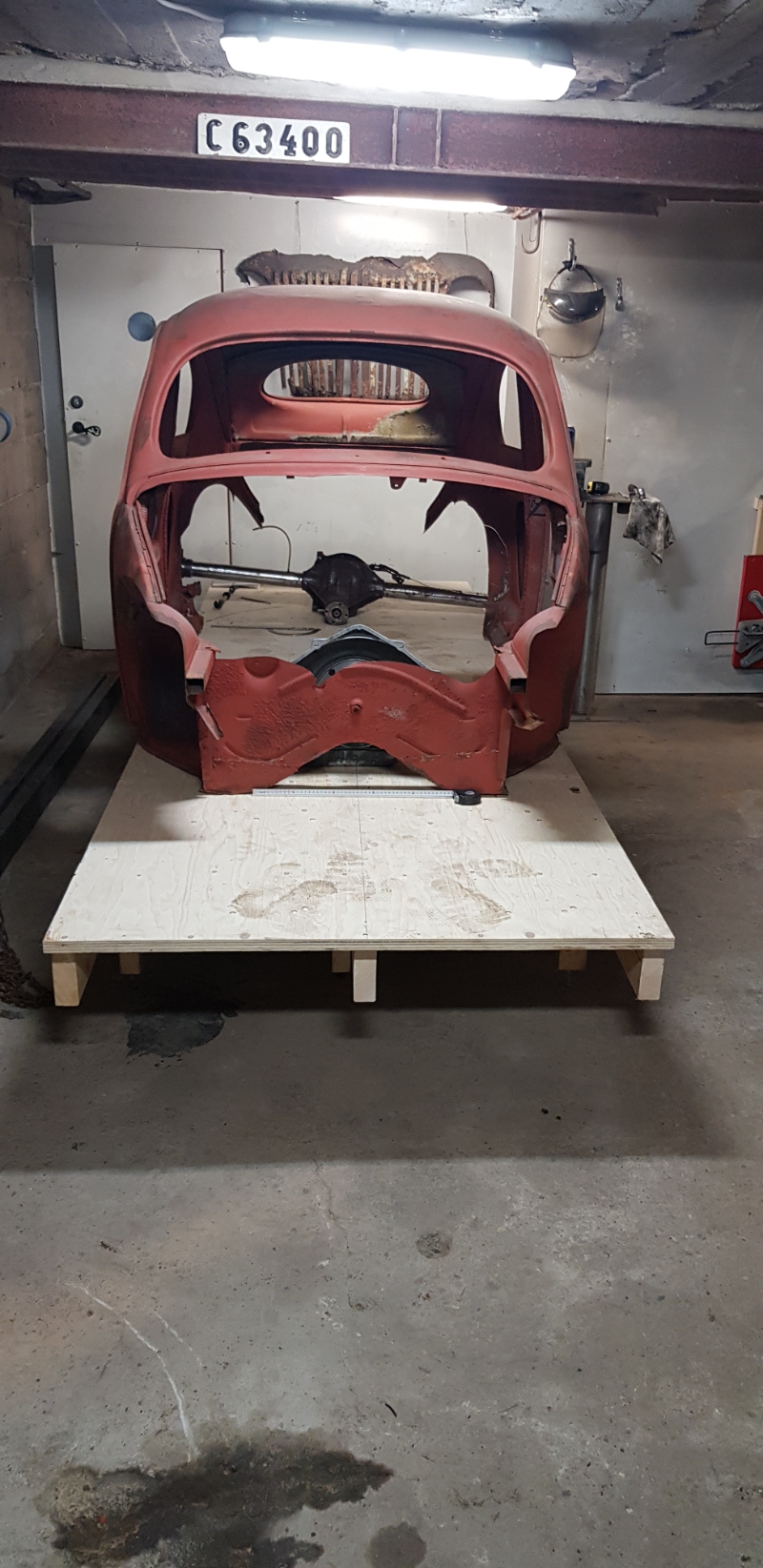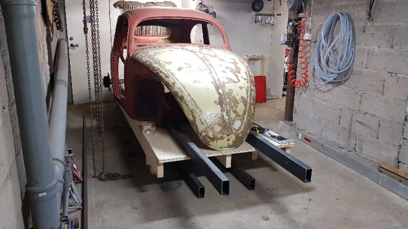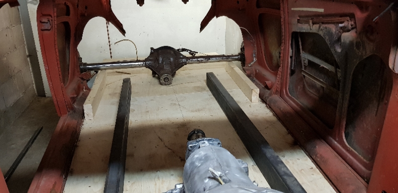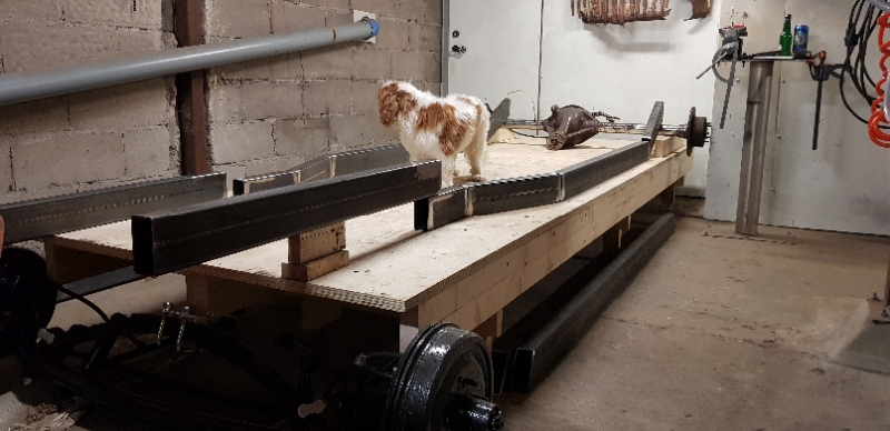 Nu är två balkar med övermått inlagda i karossen för att bäst se hur ramen ska se ut.