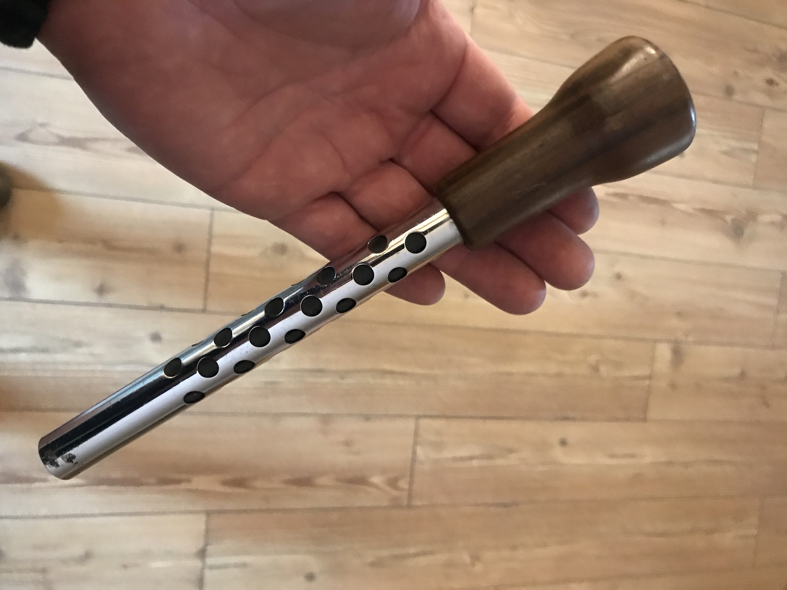 Man tar bort originalknoppen på originalspaken, trär denna över och skruvar fast!
