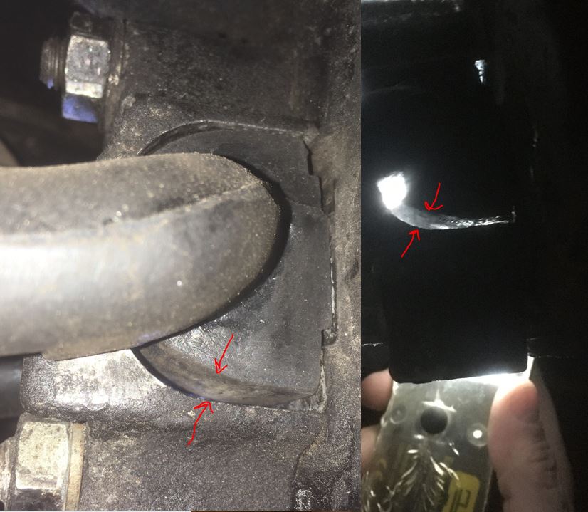 Blev aldrig riktiktigt av med mina drivlinerusk som uppstår om jag ligger med last på över broskarvar etc. (Släpper jag gasen innan går det bra) Så rullade in under nu och skulle kolla så att böjen på kopplingsvajerhöljet fortfarande var inom tolerans, (25-40mm) Noterade då vilken otroligt dålig passform det var på mitt främre nya tjurhornsfäste. som jag bytte till i höstas i min felsökning. HAde inte sett att det var så kass när jag bytte det. Då var jag mest nöjd med att den nya eftermarknadsdelan kändes hårdare i gummit än den något mjuka som satt där.