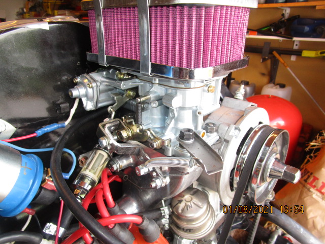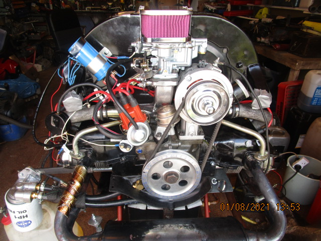 Ny byggd 1835 på ett arborrat U-block med bussbalkshål. Mittmonterad 32/36 DGEV elchoke förgasare, w100 kam,92mm cylindersats tjocka väggar, 40/35 lätt portade toppar med nya styrningar och hårdare enkelfjädrar. Bromsad o inkörd med justering av lamda värde, runt 90HKR o 140NM vrid. Kan skicka mail på alla grejer som e nya i motorn och bilder om så önskas.