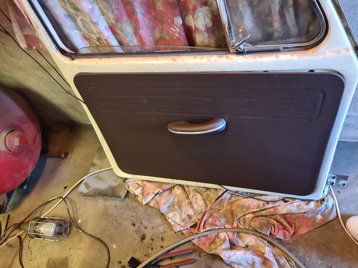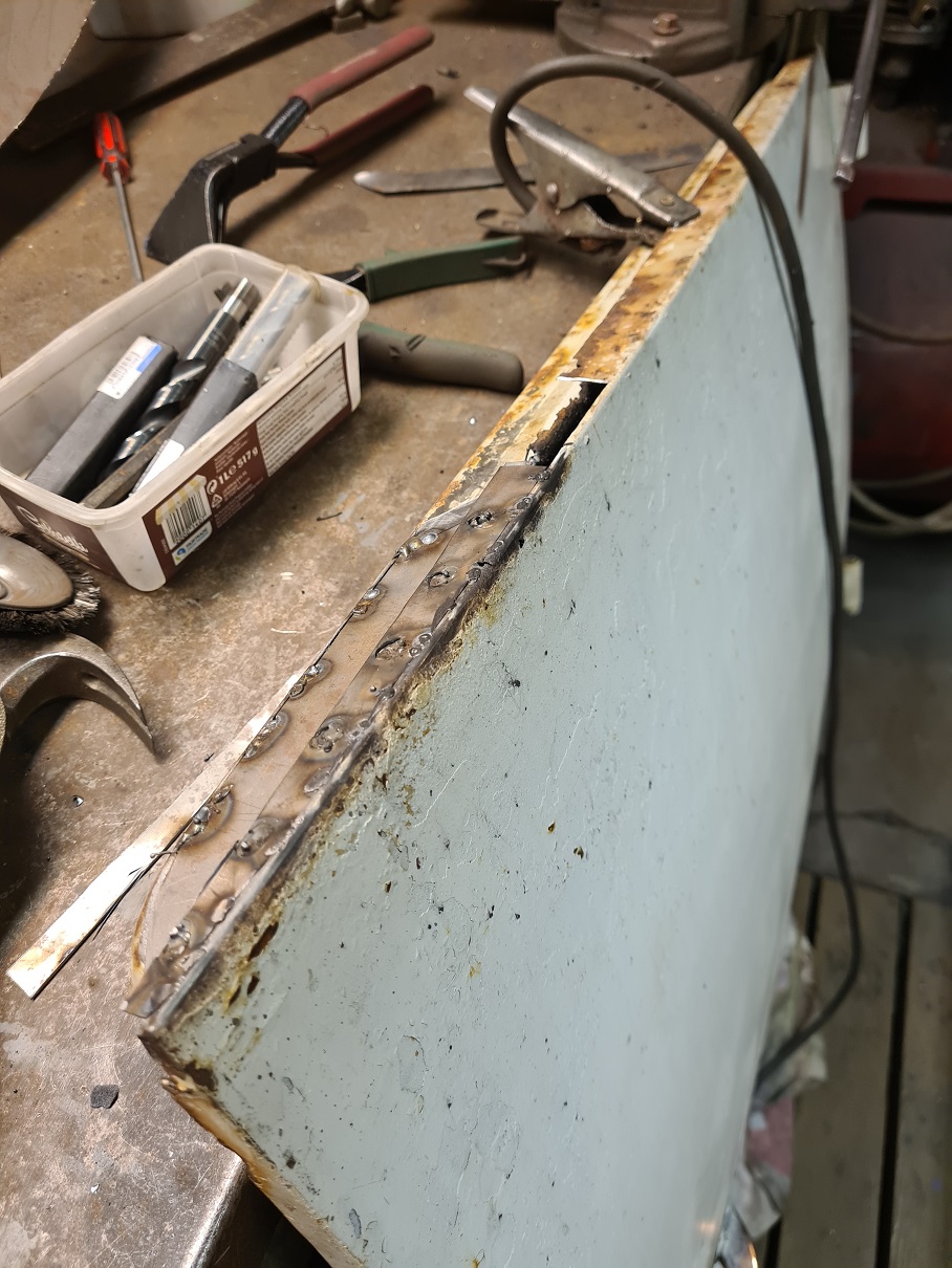 Men det är ju med det som med vissa andra aktiviteter skönt när det är klart, eller ja nästan klart. Eftersom jag är lite skeptisk till viss ekonomiplåt och även ville behålla utsidan lagade jag en bit i taget på dörrarna. Då minskade jag risken att det skulle slå sig eller "dra iväg". Dörrarna ser faktiskt ut att passa riktigt bra igen efter lagning, byte av trösklar osv, osv...