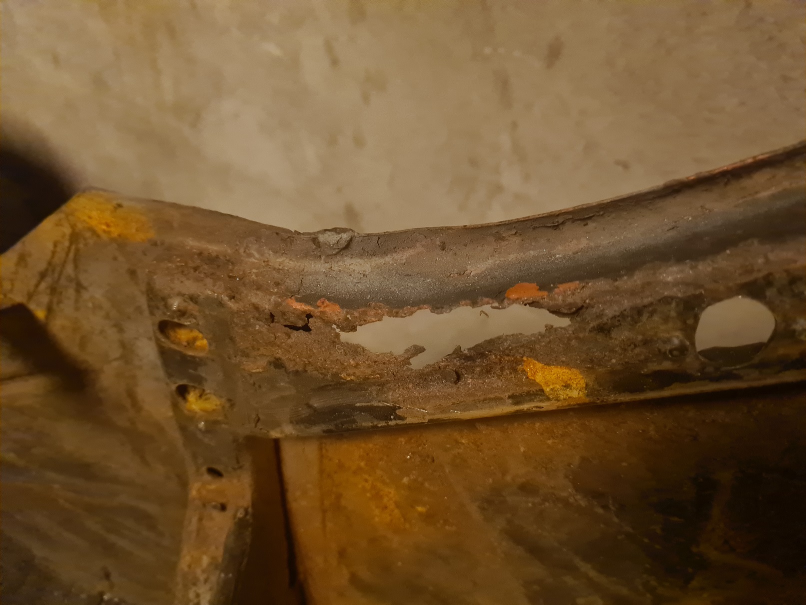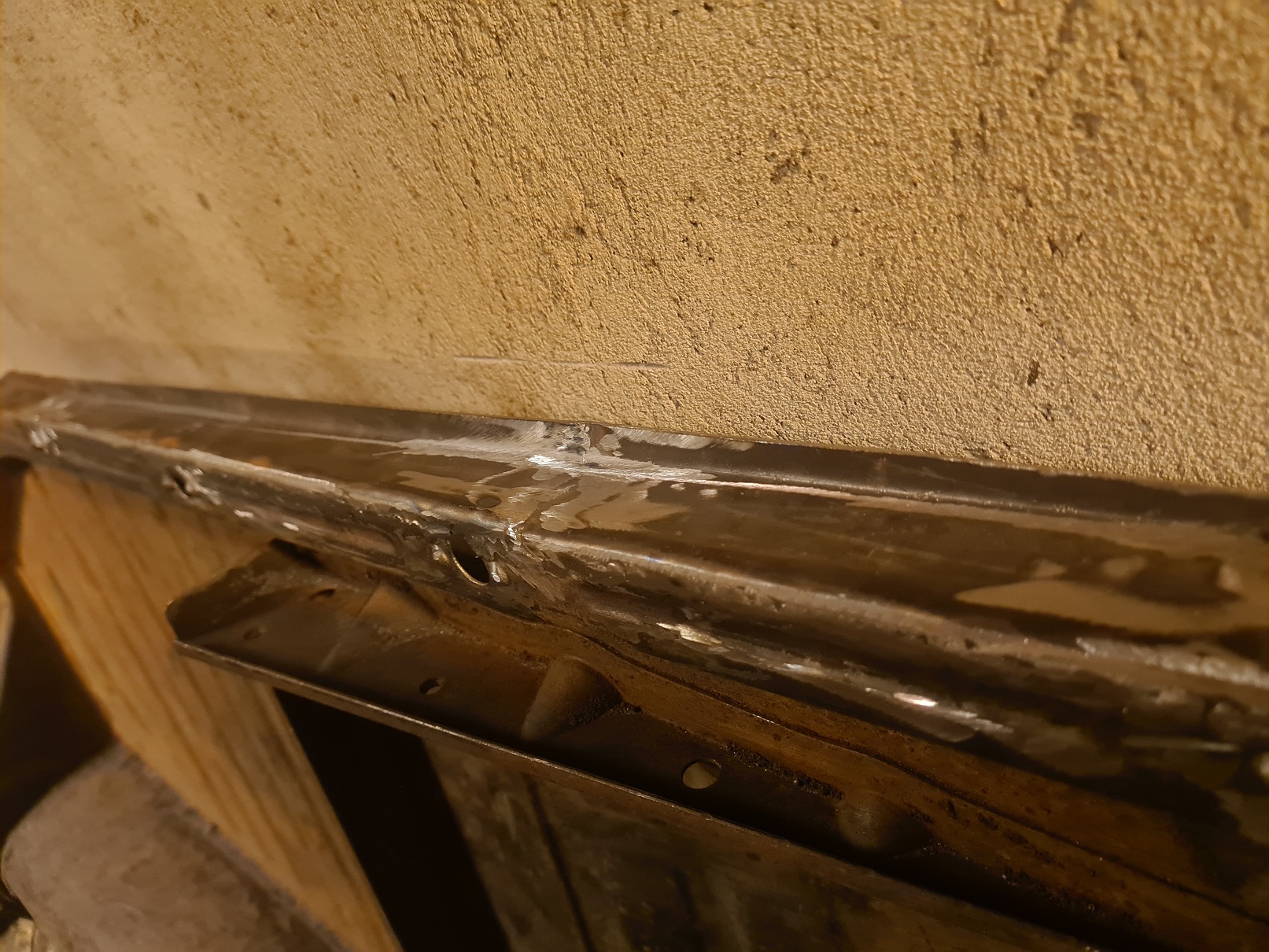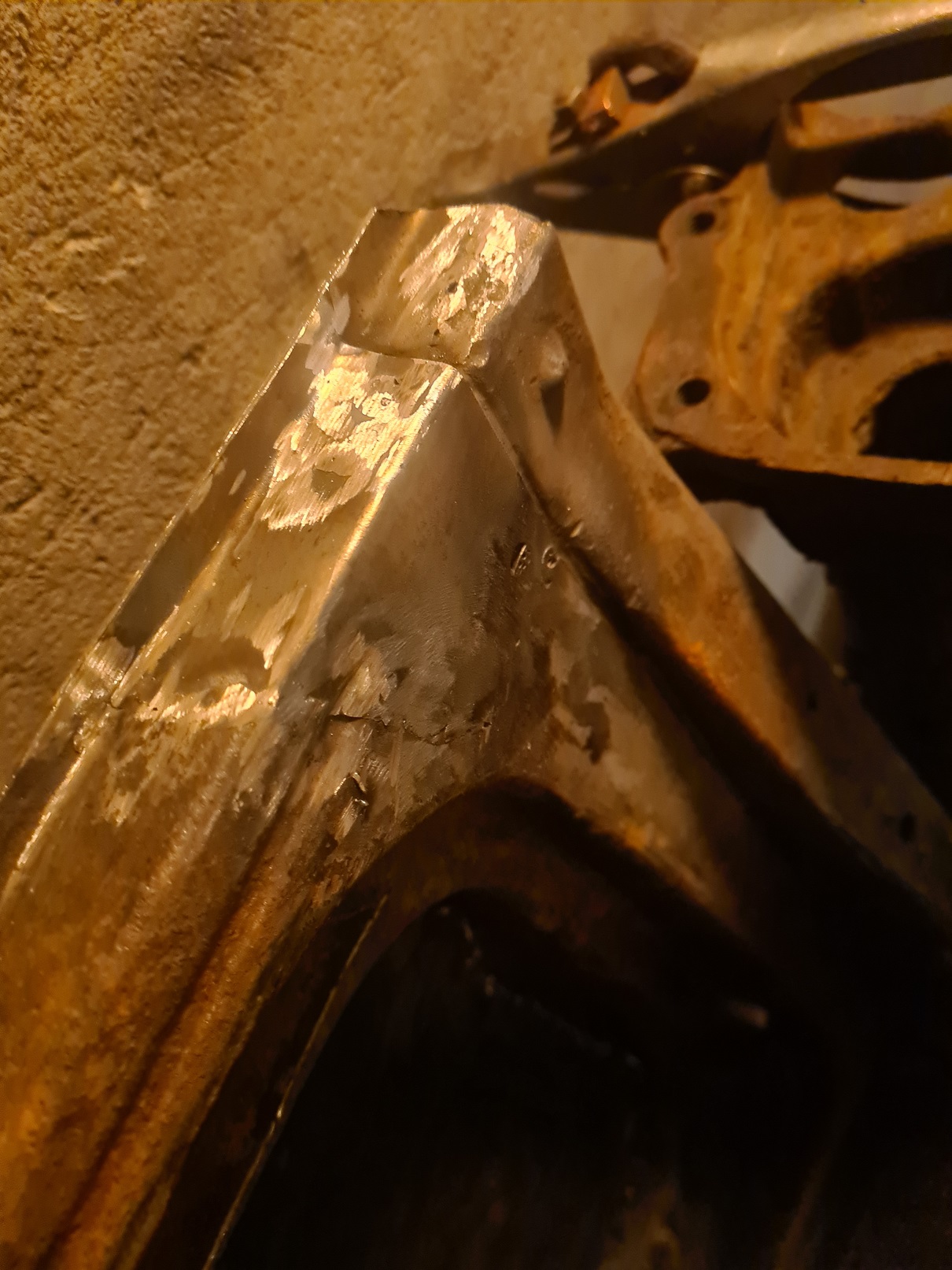 Sen när jag skulle kolla över v-fram infästning så hittar jag en ganska diskret men ändå uppspacklad infästning... Sååå färdigsvetsat? Nopp....