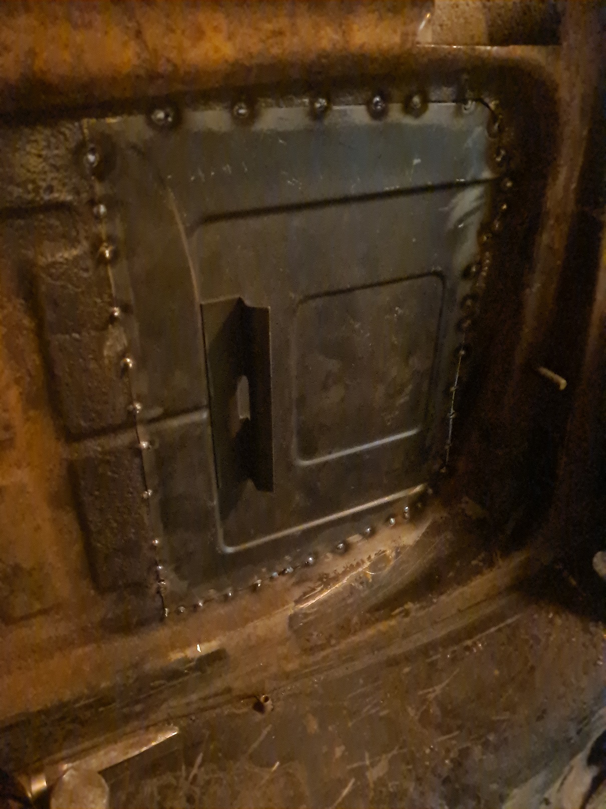 En sann cal look ska tydligen ha cabbebaklucka så det har det blivit en (har nog bild på den tidigare i tråden...), lite fundersam hur jag skall möta resten av den patinerade utsidan. Insidan är ju enklare, den skall vara blank å fin. Tänker inte heller ha ljudisolering på torpedväggen (kallar man det så på en bubbla?) iaf plåten framför motorn skall lackas...