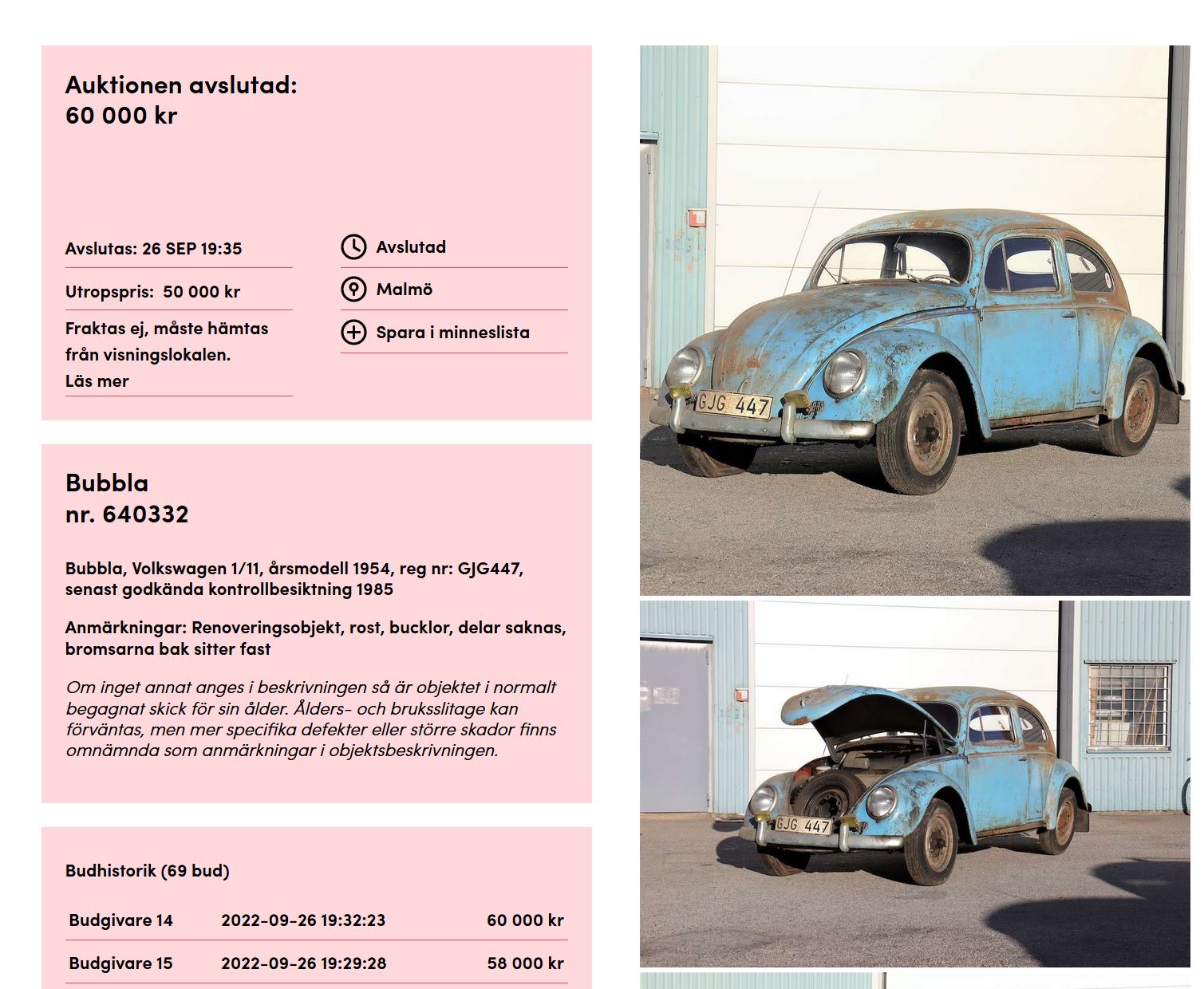 Röda 66,an 50 000 igår 64 500 som slutbud