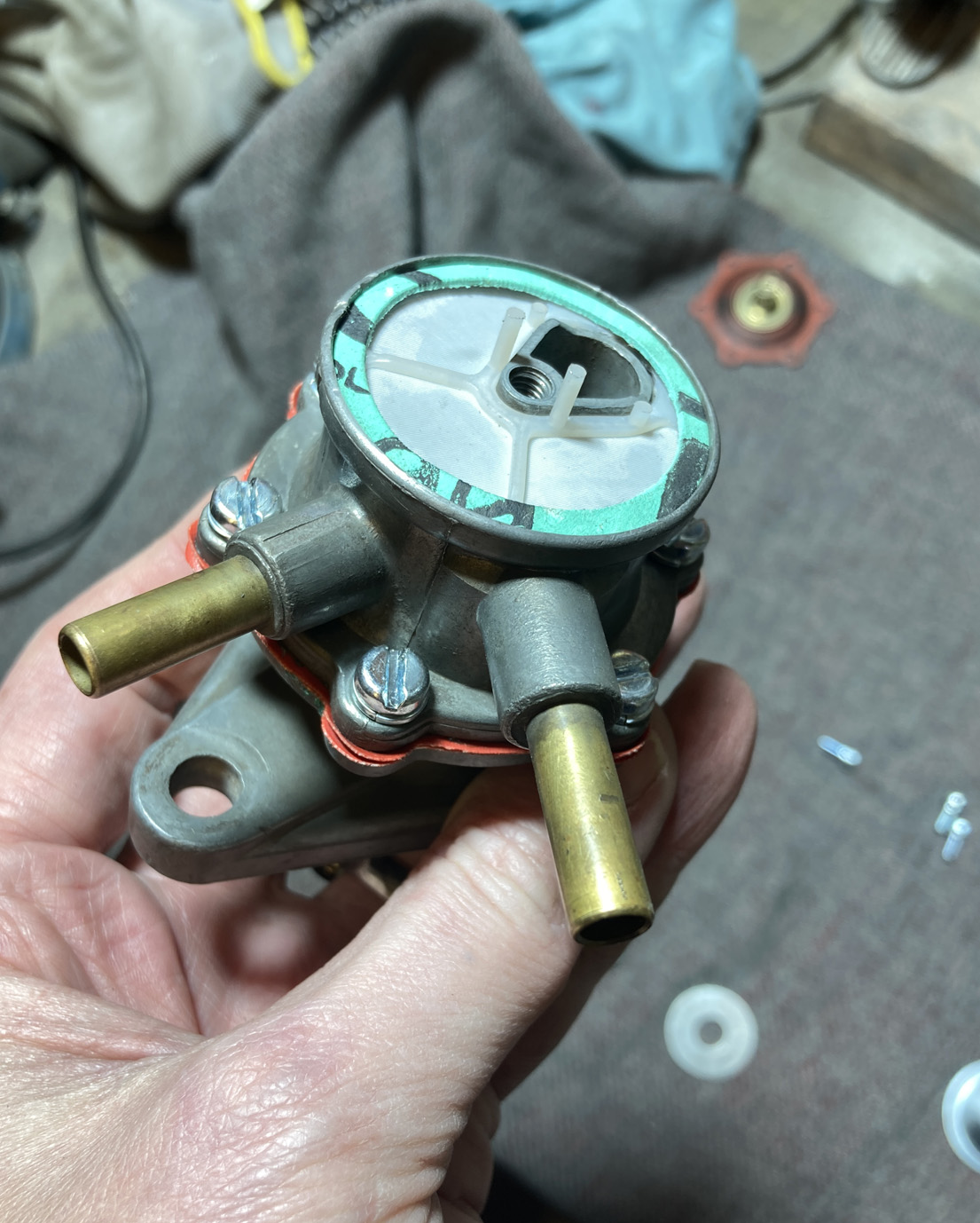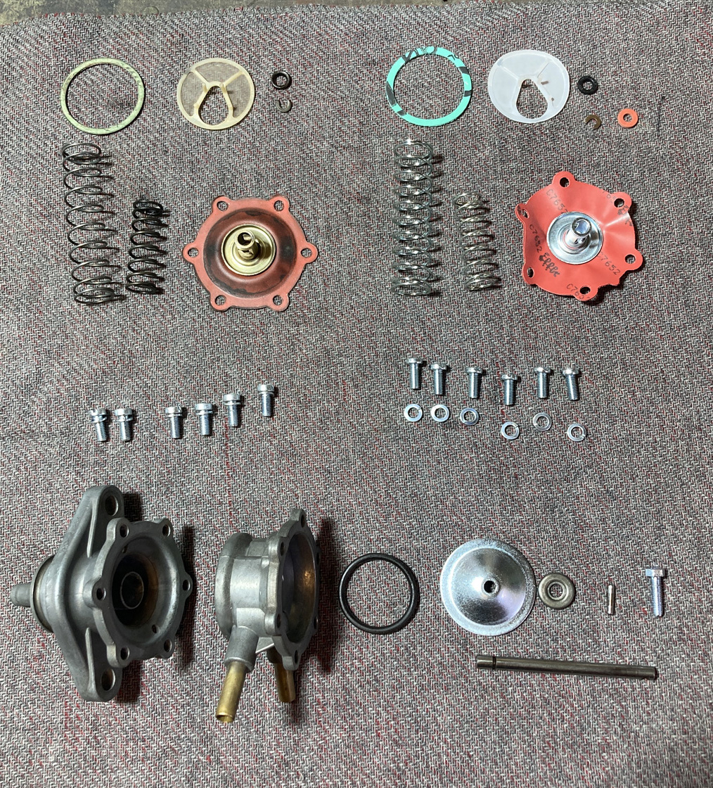 Nu var det dags för bensinpumpen att få sig en omgång. Det segaste med det var att jag hittade ett renoveringskit hos en kille i England på Ebay. Lade ett bud och fick det. Då visste jag inte att det skulle ta drygt två månader för paketet att hitta hit! Tyvärr får man nog undvika UK i nuläget när det gäller att handla där.