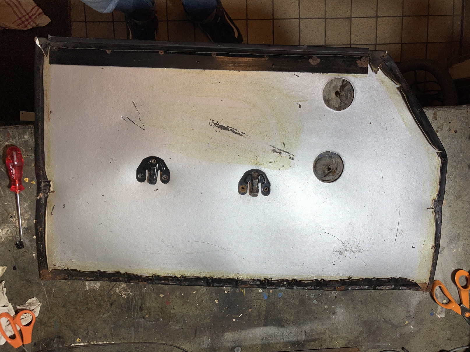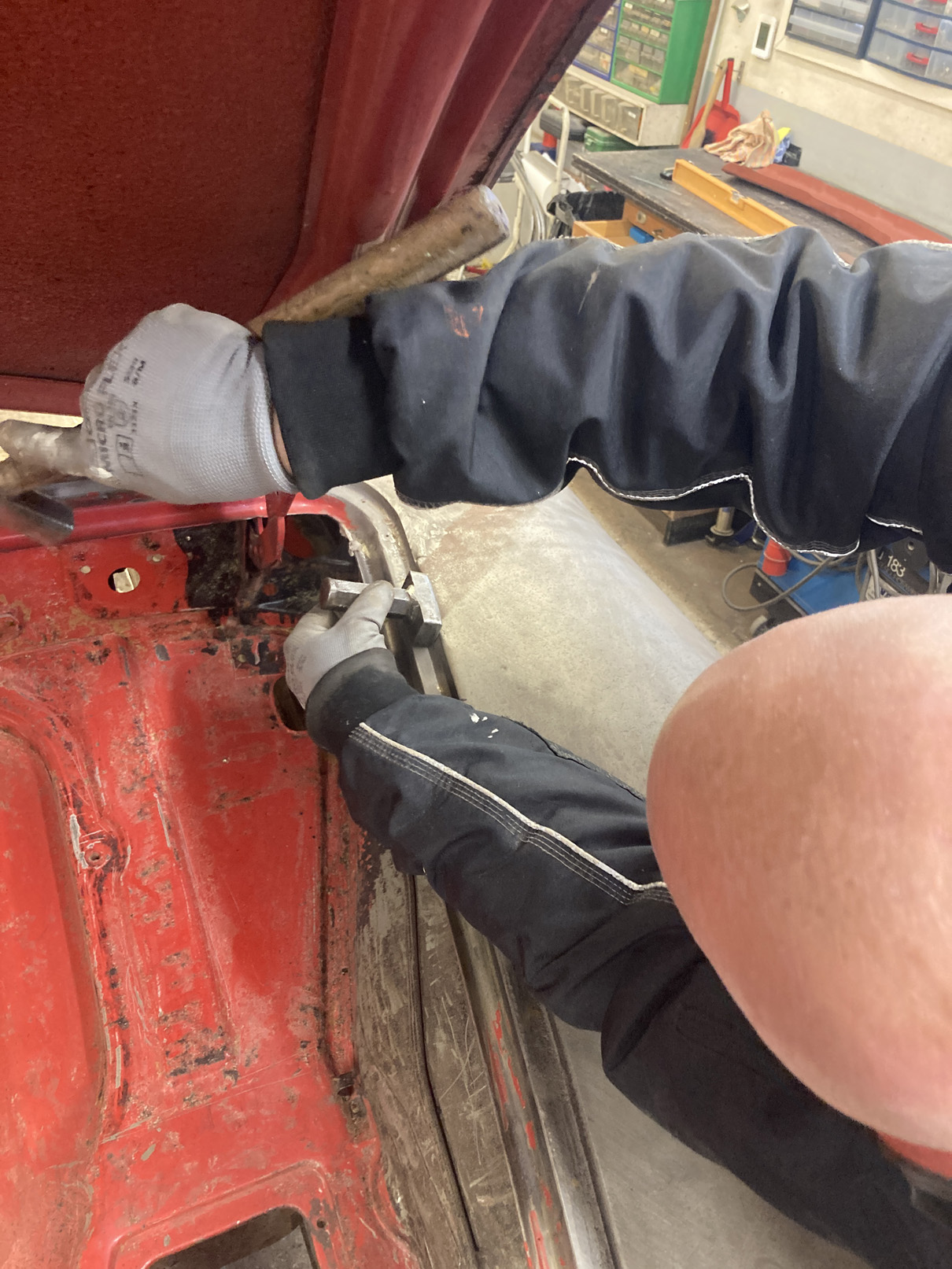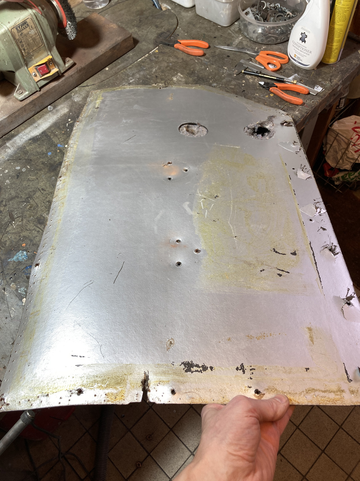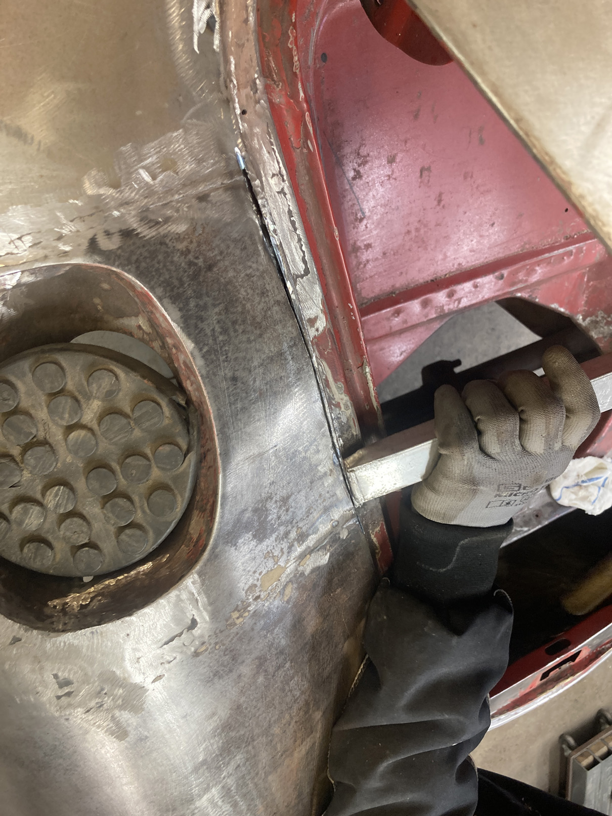 Vi fick skära upp och massera plåten på vissa ställen.