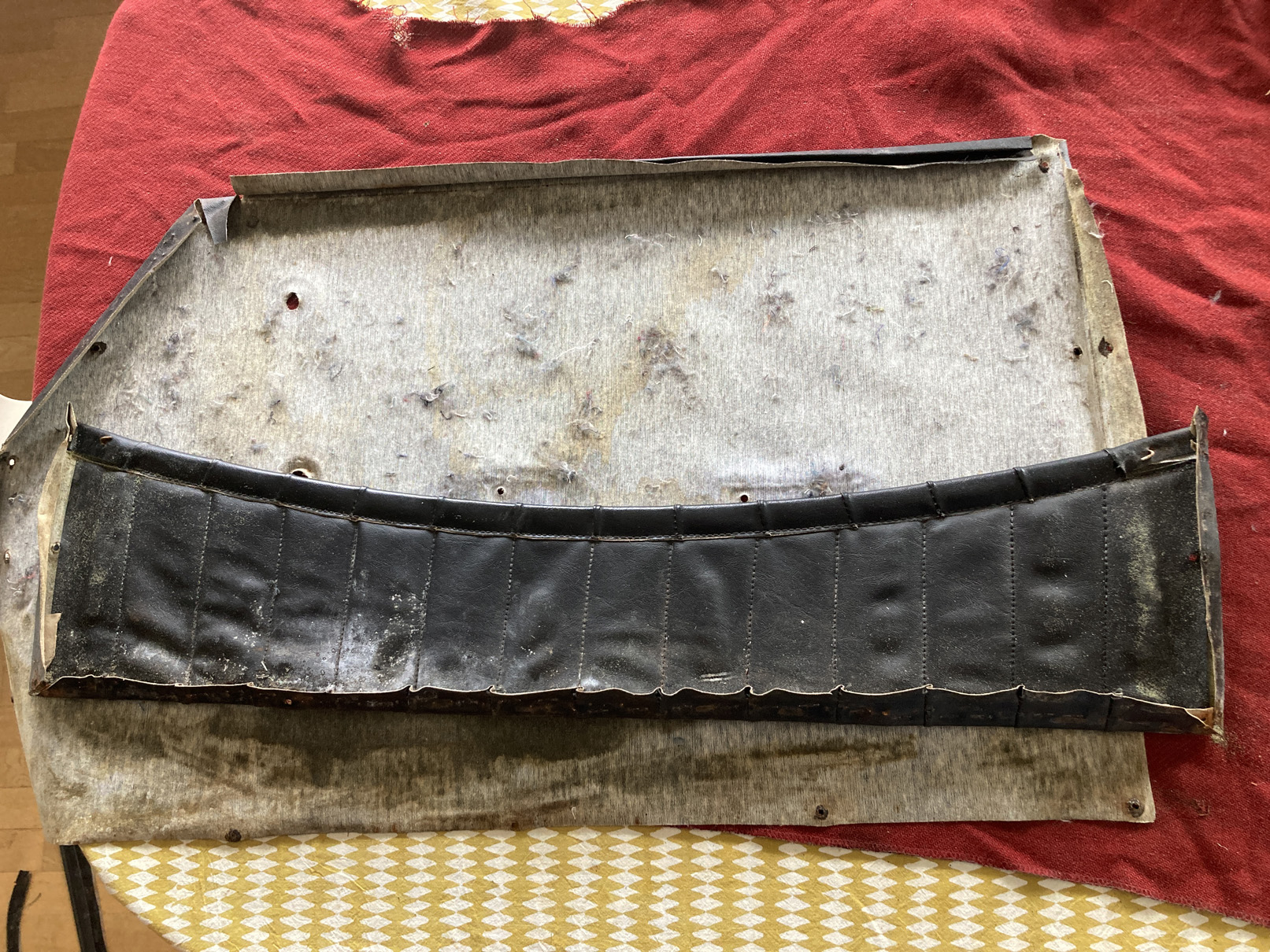 Så här såg klädseln och fickan ut på avigsidan. Mycket gammal mög så en ordentlig rengöring och lite uppmjukande "undermedel".