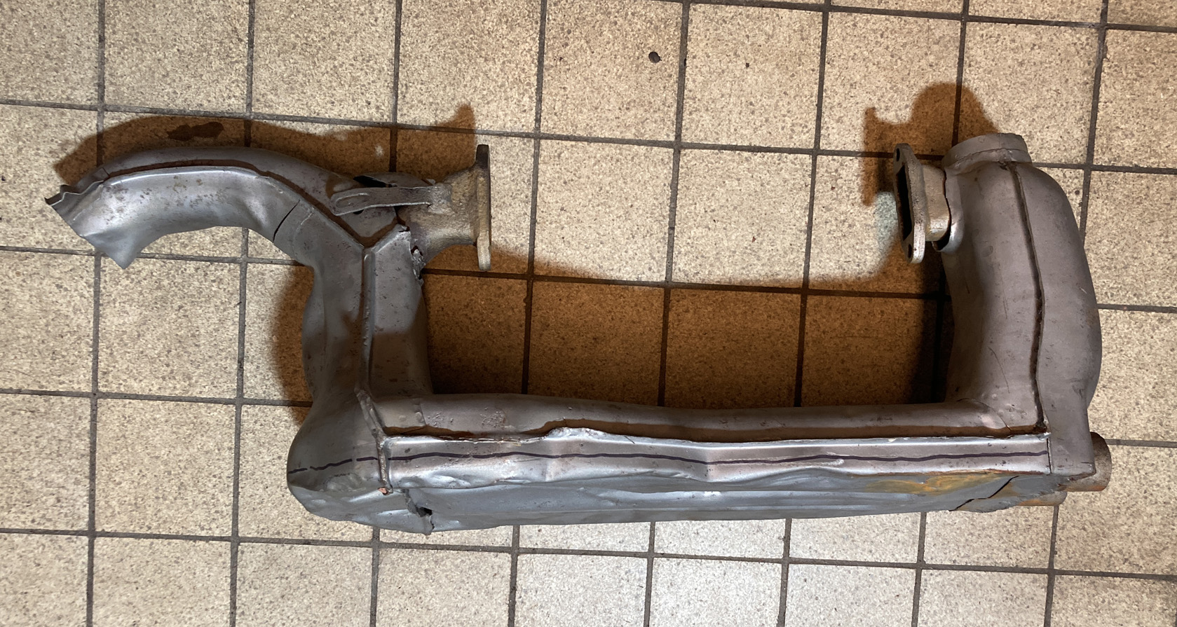 Gav upp det efter ett tag och skar loss "fronten" för att forma till den. Då visade det sig att även rören inuti var intryckta. De har nog varit med på en avåkning i rally!! Bara skrot.