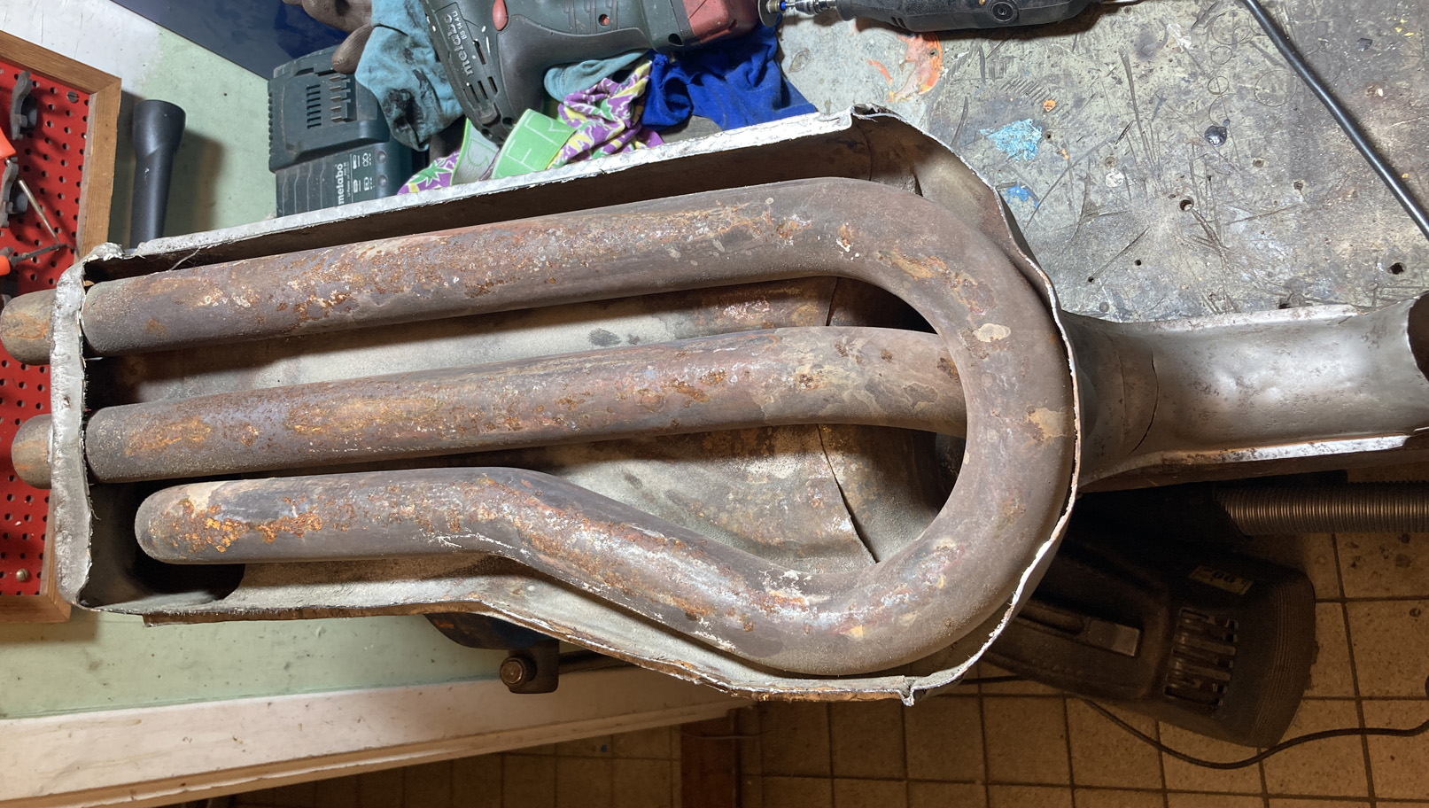 Under tiden har jag roat mig med att kolla in mina värmekammare. Min bil är ju en svensksåld 1964 så den har något som kallas "Euro spec heater". Det innebär att värmen är bättre, men också att delarna är svåra (eller/och dyra) att få tag i. Har ju köpt rostfria till min 911 så hade inte sett att det skulle bli så svårt att hitta.