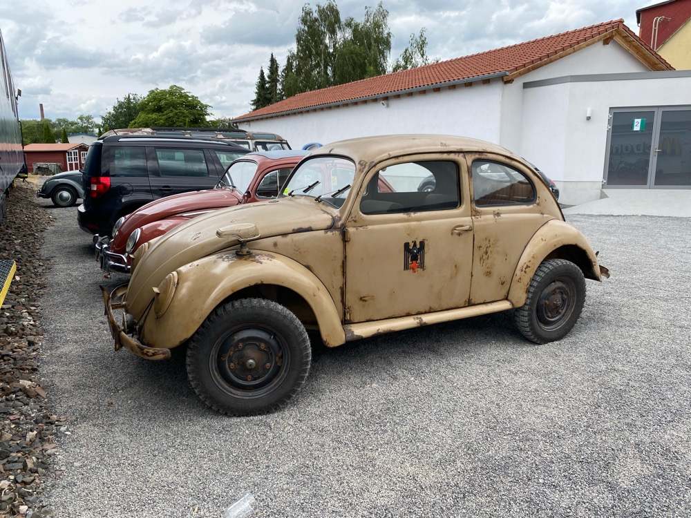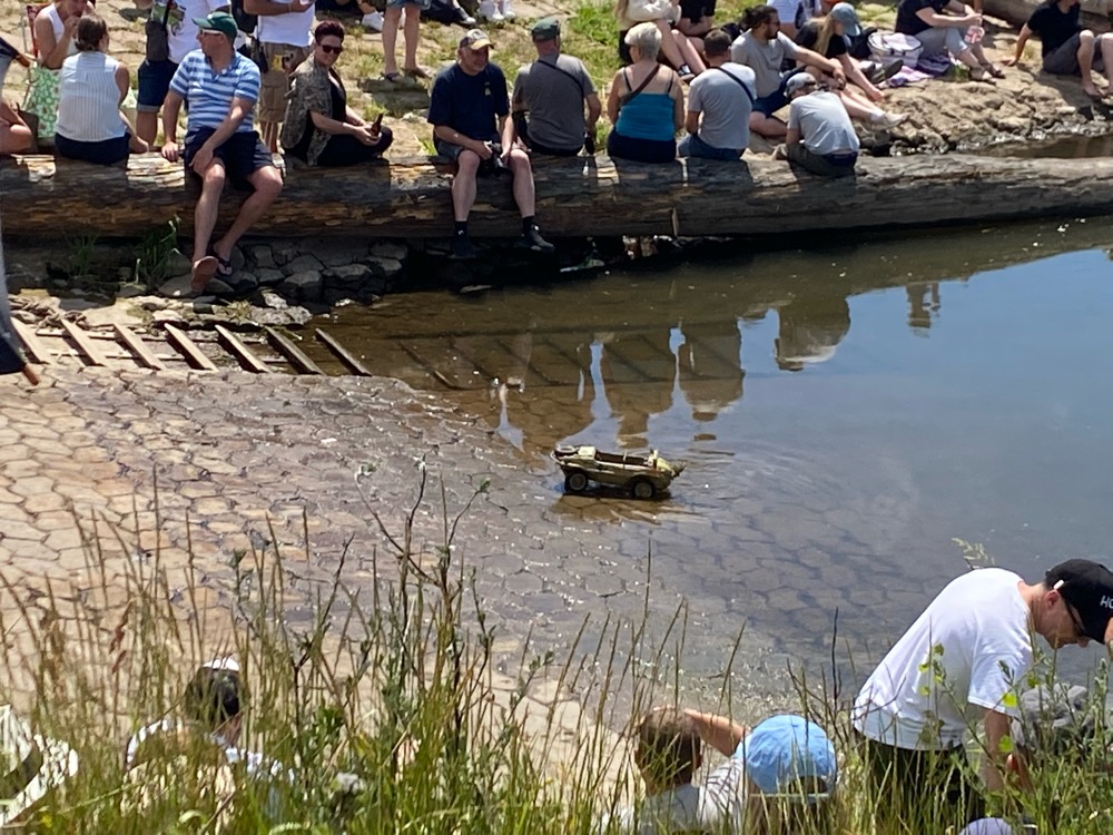 Idag var vi till landstigningen av schwimmwagen. De andra i gänget hade trampcyklar med sej och jag tänkte hand-gå dit. 2km vare nån som sa men det var nog 5km dit minst.  ICQ/bu