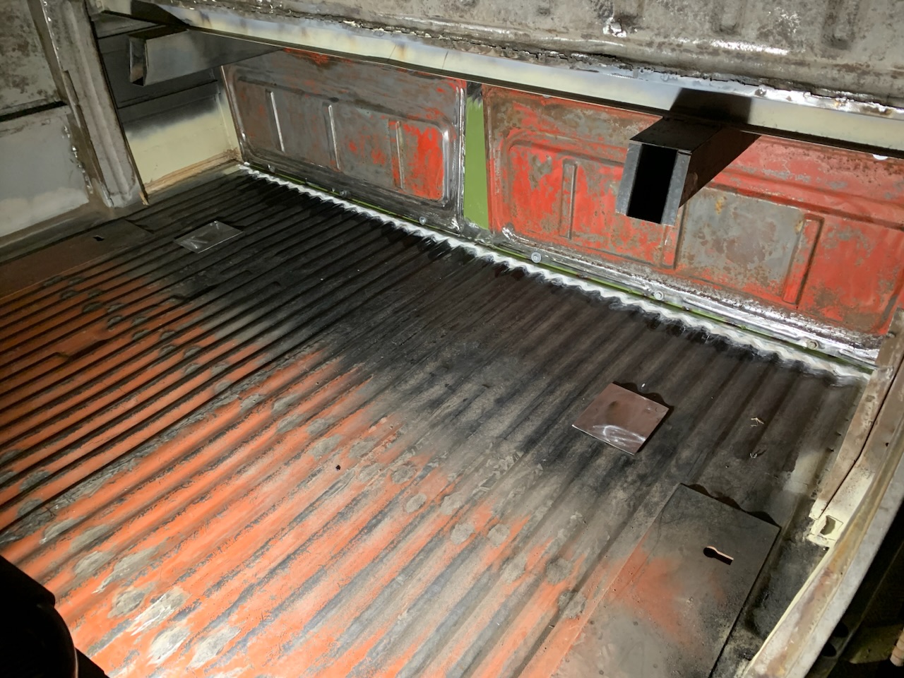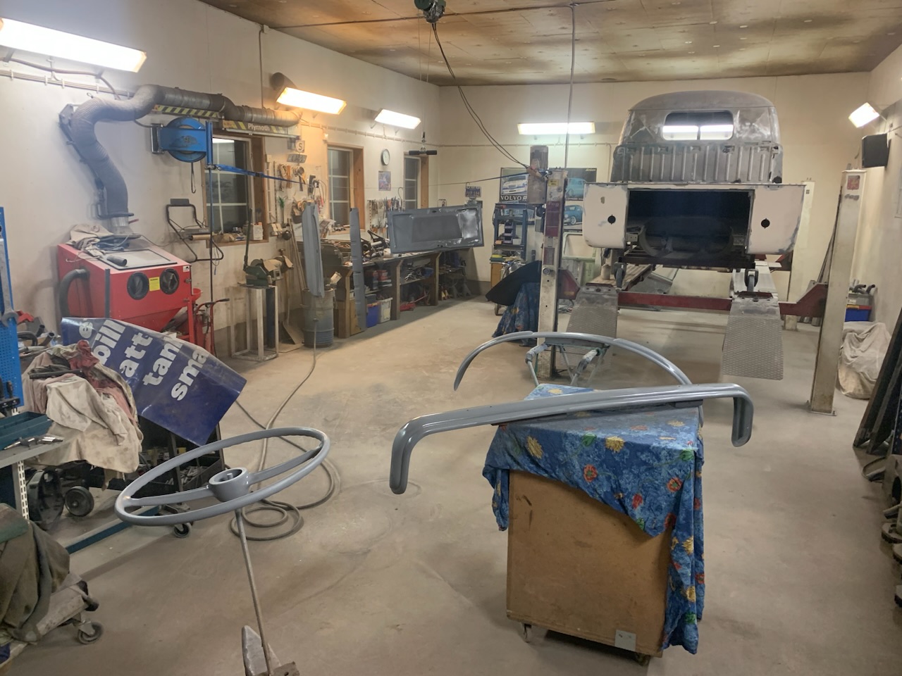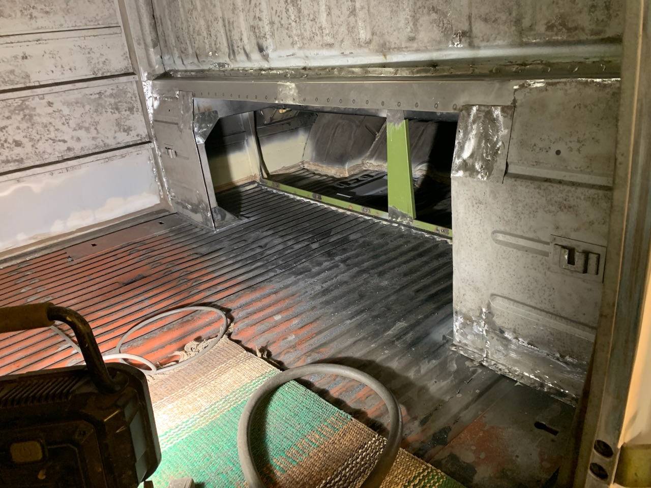 Mellanväggen mot baksätet fick lagas både i ovankant och i botten samt att förstärknings plåtarna byggdes nya, men nu sitter det på plats i alla fall.