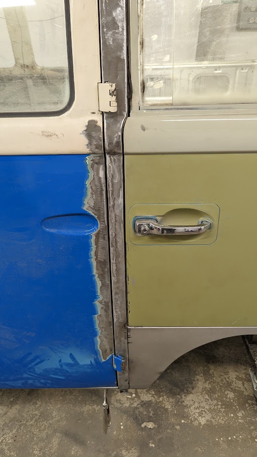 Har ju inte jobbar så mycket med split grejer... men dörrhandtaget på framdörren... ser konstigt ut i plåten. Pressningen/kanten runt handtaget?