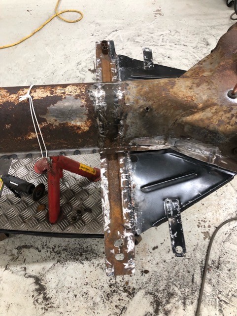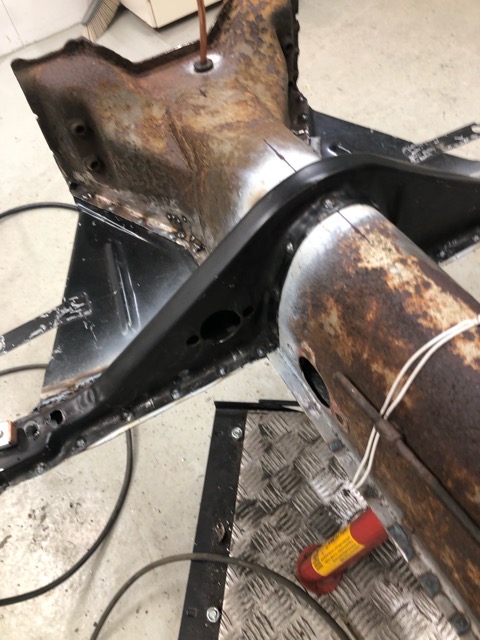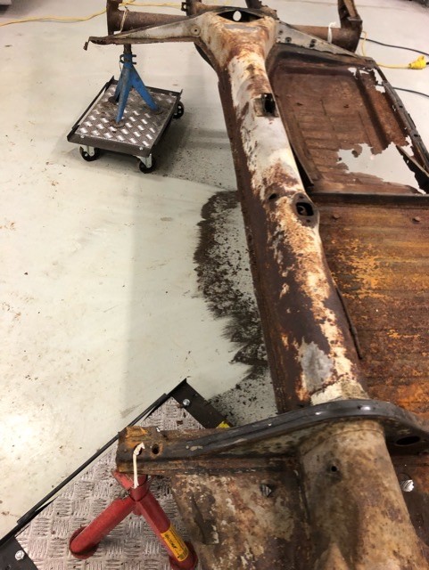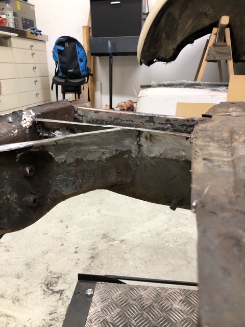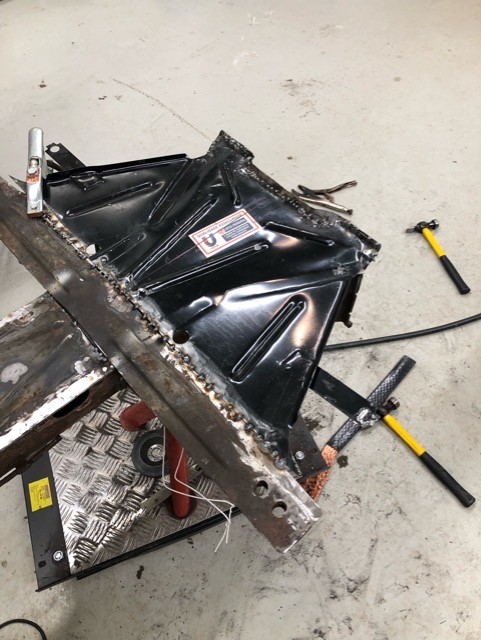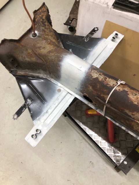 Är tanken att blästra sedan?  Annars hade det kanske varit lämpligt att slipa rent torrisions röret innan golvbakkanten hittade dit ICQ/bn viktigt att höjderna bir rätt mot karossen.. men är kanske underkant på karossen oxå helt slut troligen..??  I sådant fall är det smidigt att sedan skruva fast dom i plattan innan dom svetsas fast i karossen.. kan vara lite trixigt att få till lämpliga dörrspalter sedan.. då allt rör sig... ICQ/bu
