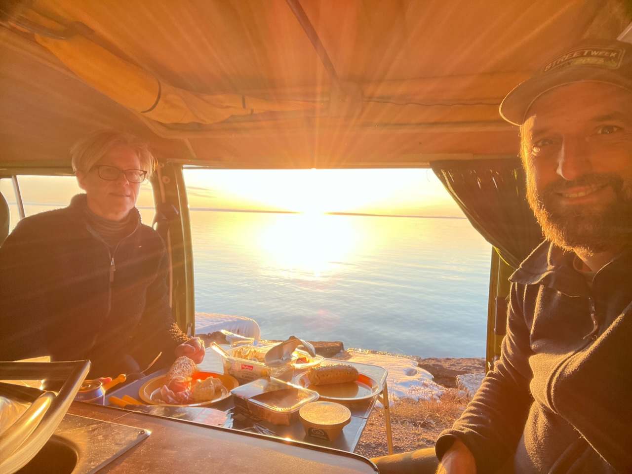 Nä å så kom ett par förbi som vi känner ihop med sin dotter så vi blev fem i bussen. Fick plats å ölen räckte. 0.0 till mig kan tilläggas…
